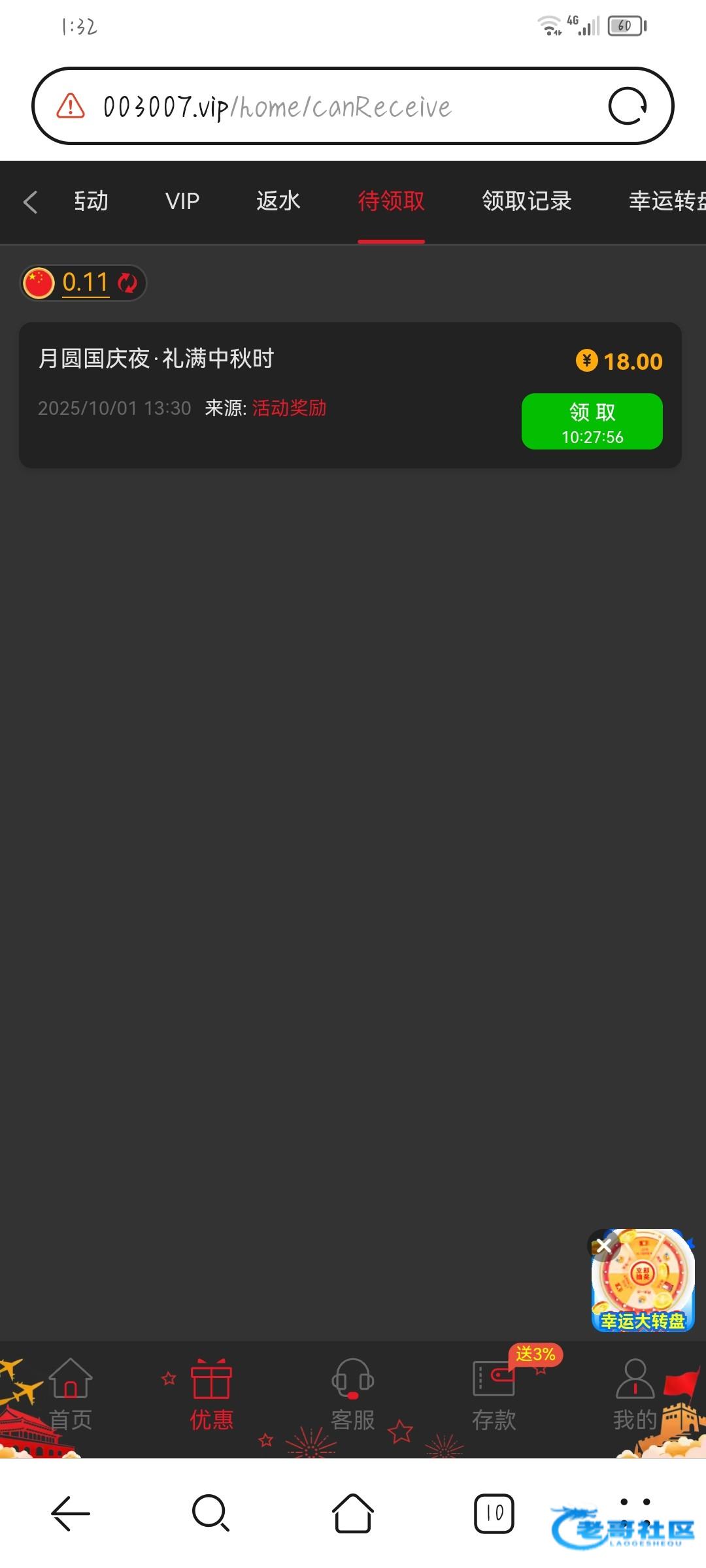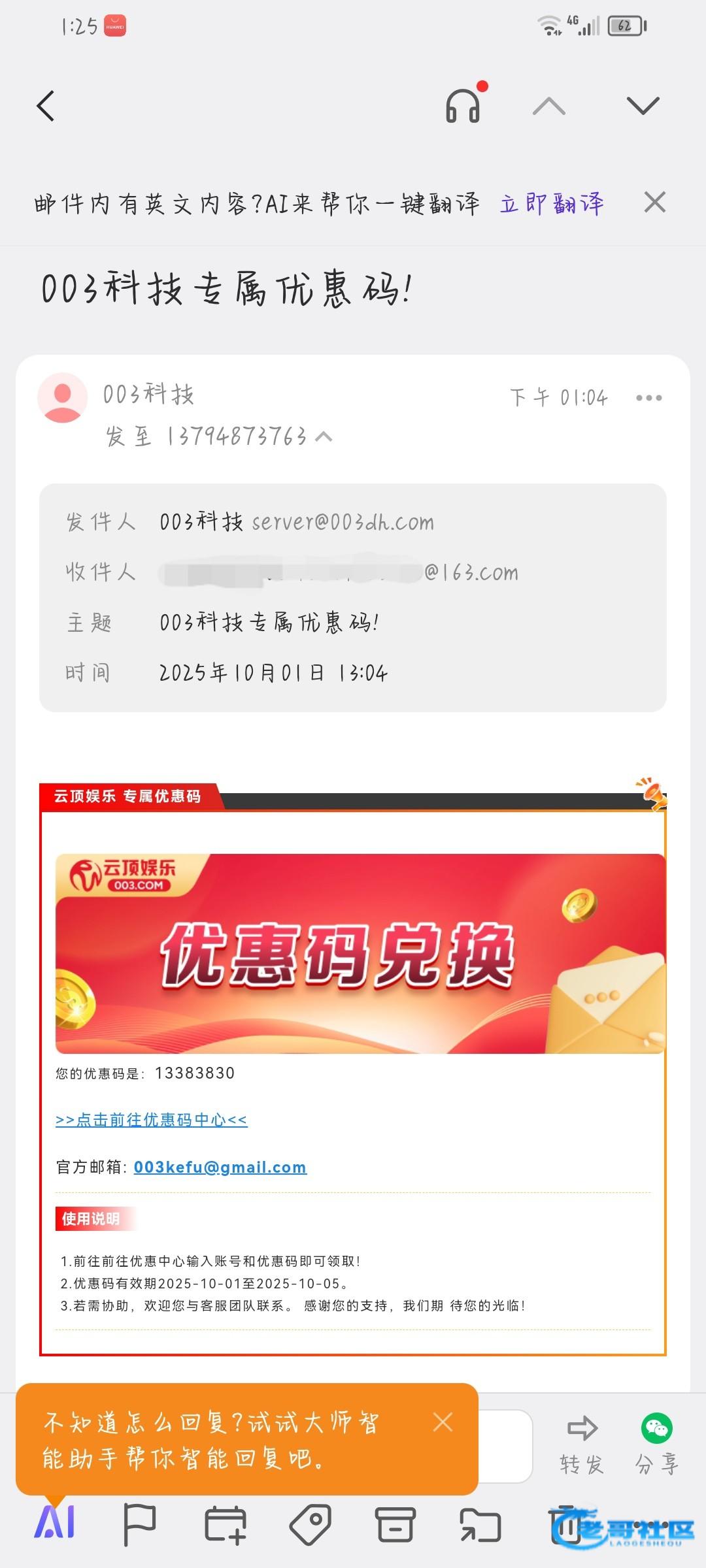 玩过云顶娱乐的老哥可以看看邮箱有没有优惠码 有的话去优惠码中心入口领取 我就充值过玩过100 领了18 链接003.com