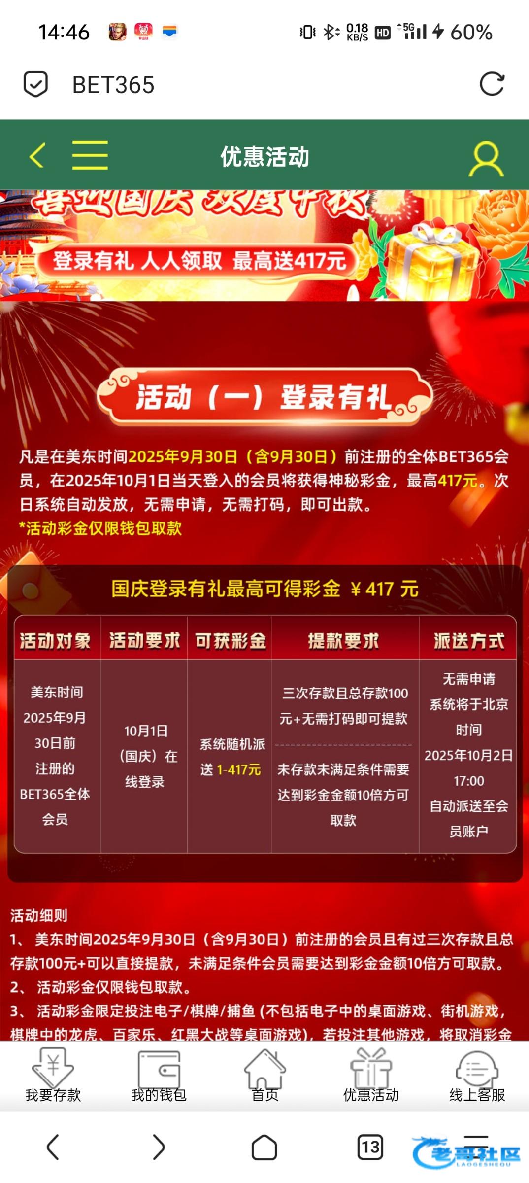 10.1号登录,2号派发彩金,没充值的估计就几块钱。网址417.com