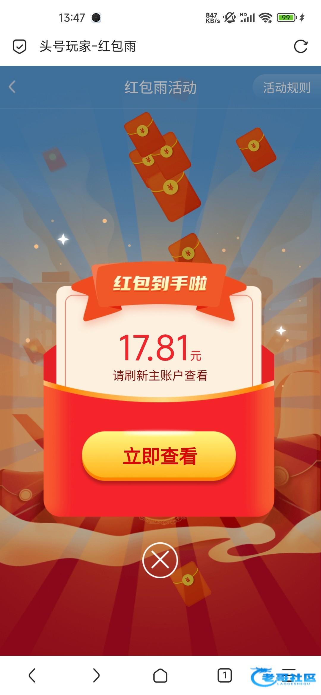 有效贴 红包雨领了13.7 梭了两把真人 提了136 秒到了 头号经常几千几千充 没黑我
