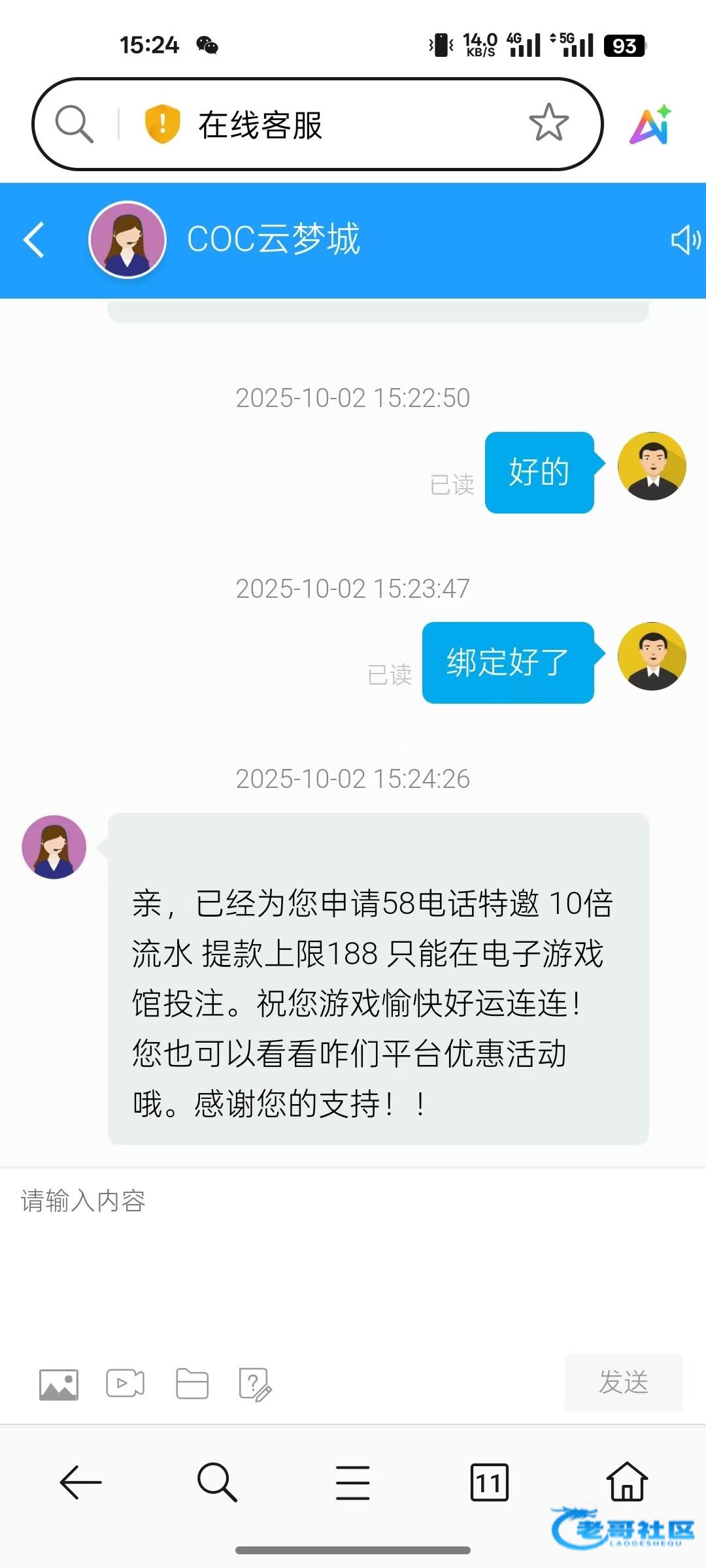 链接https://www.coc234.xyz/,先随便注册个账号,然后发账号手机号给客服,是特邀的话他会叫你绑定手机号,送58,10倍流水最高提现188
