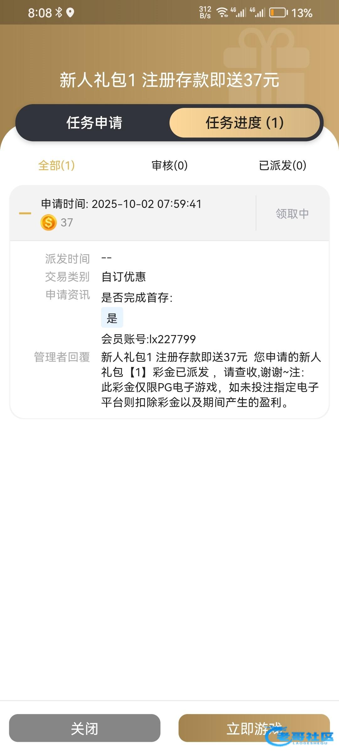 申请到了37 没水被反撸