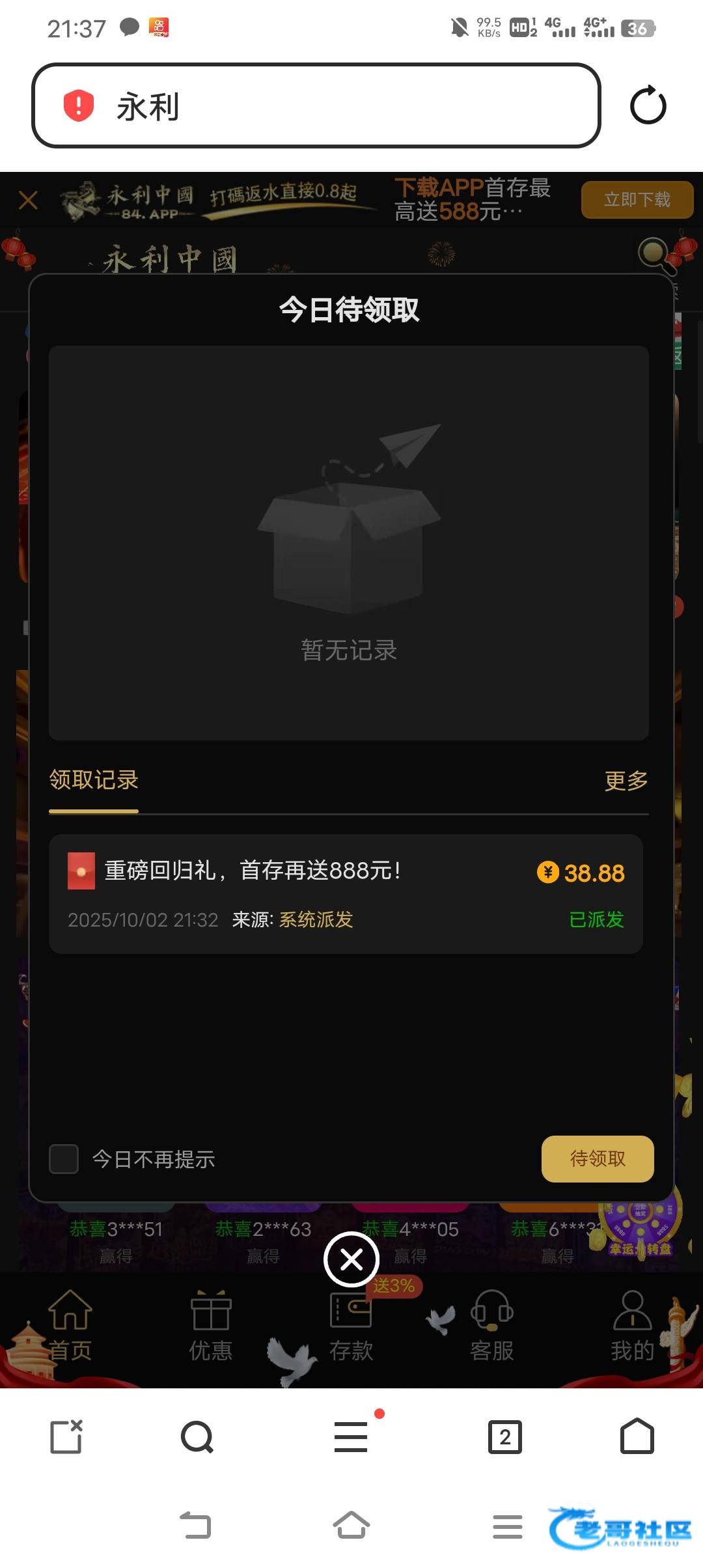 【永利84】—✅—回归彩金