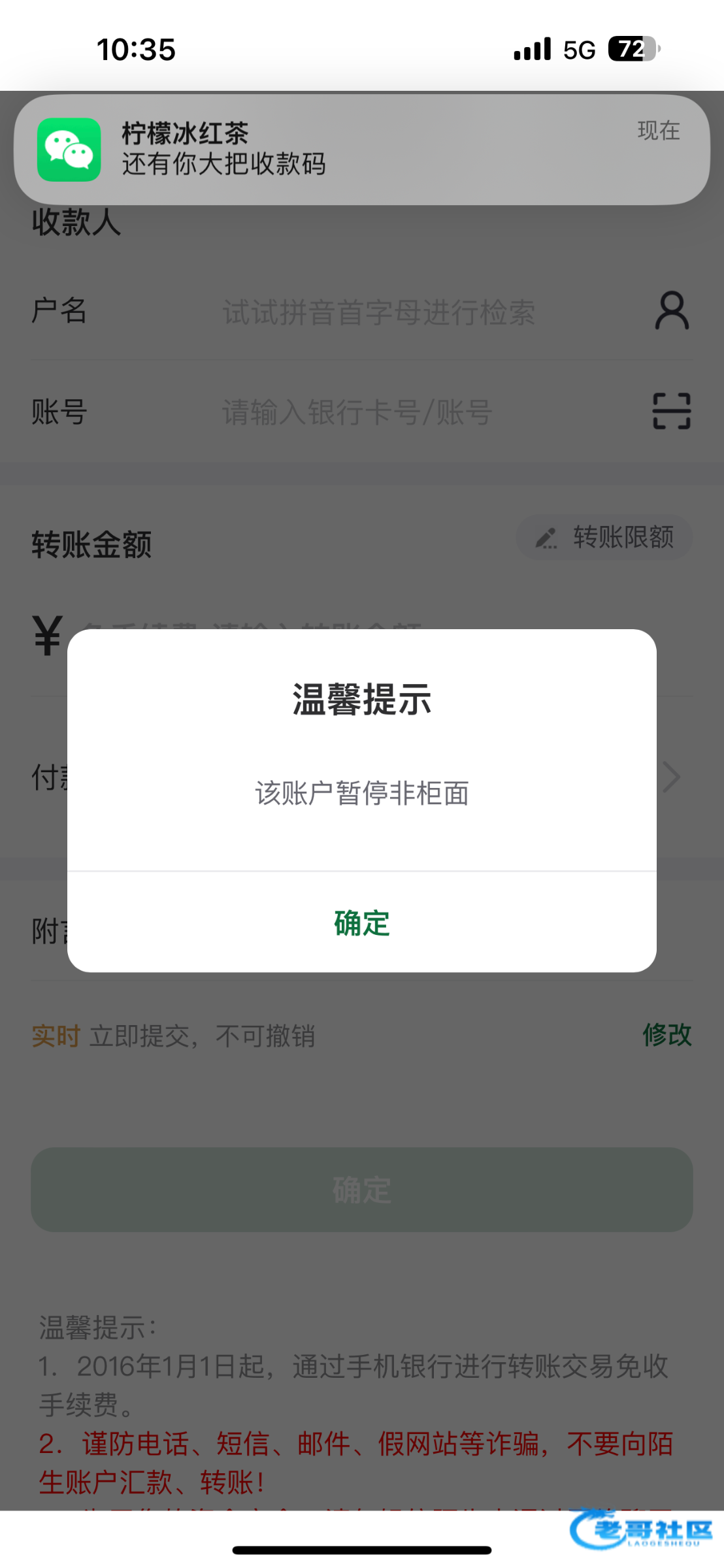 老头爆的150000,早上提u分了两笔卖,第二笔7万多v风控了直接用的邮政卡收钱,钱刚进去秒非柜面,去银行柜台掰扯半天什么证明都提供给他了就是不给解除非要我找开户行,开户行又不上班,最恶心的跑了一天不给解开只给我取三万现金,晚上12点自动解开它也不说浪费我一整天时间,太坑了邮政的卡今年豆非柜面三次解了三次,以后再也不用邮政了