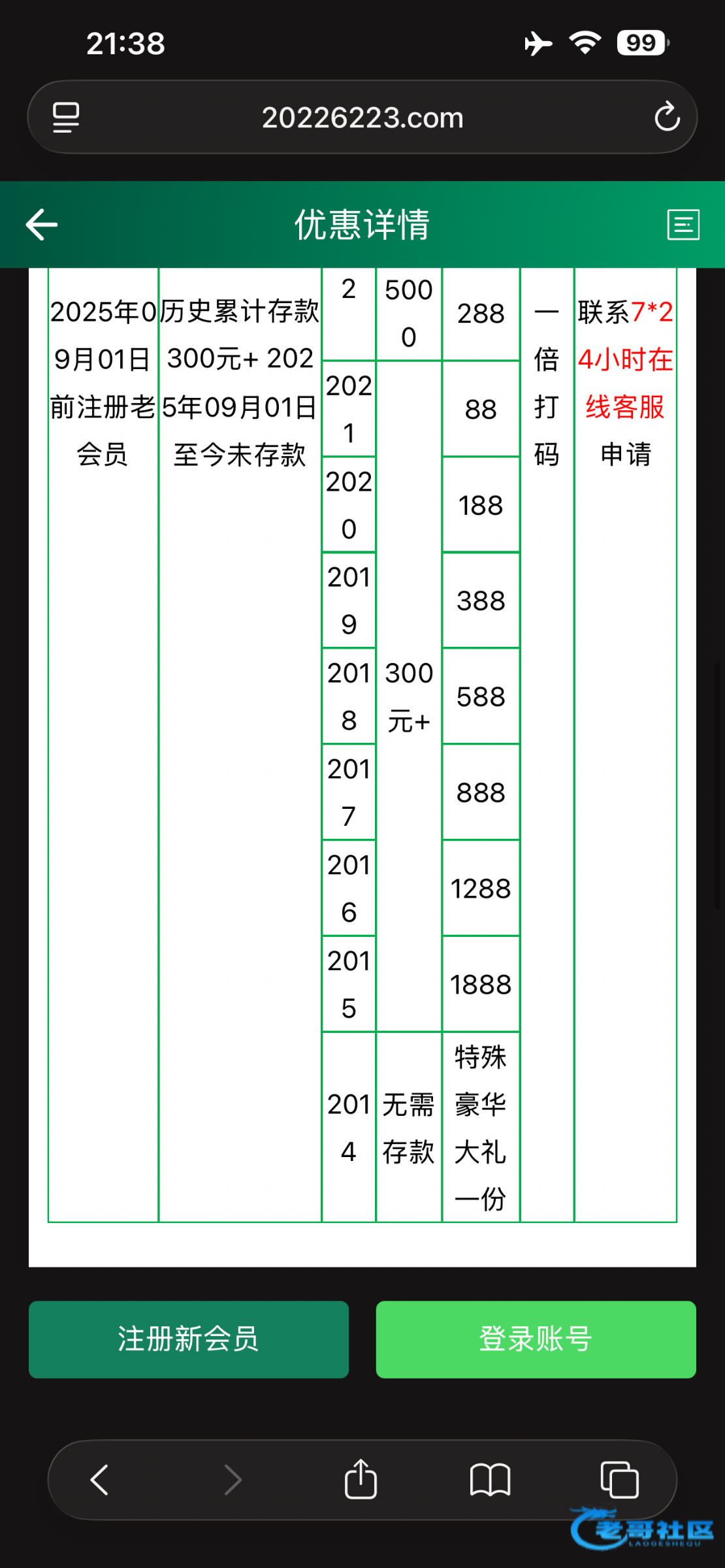 这叼台把我优惠封了 只能领vip周和月彩金 我19年注册的 不然有388 有注册过的可以上去领 打出来团包烟20226223.com