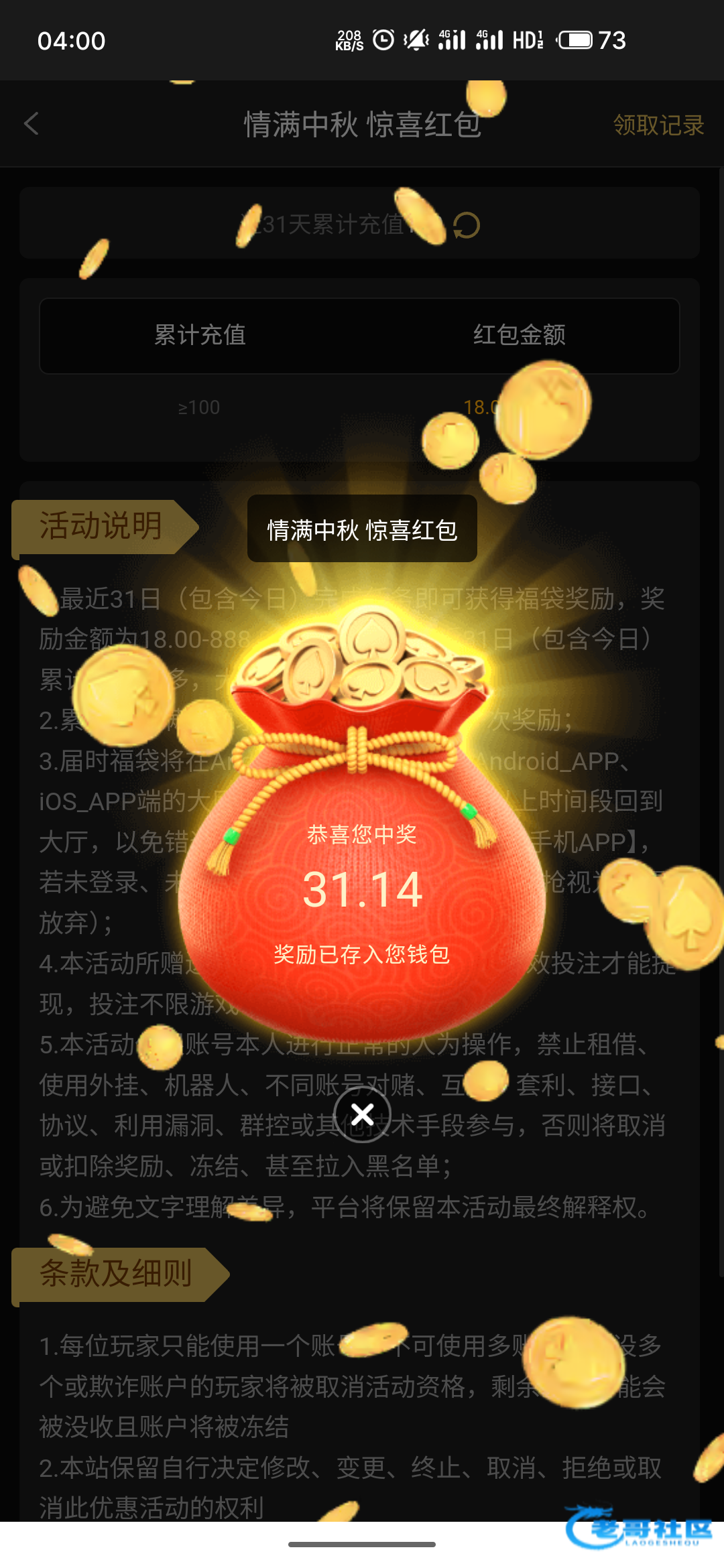 靠啊,特邀38拉到剩下最后几块钱调0.4 来四个湖,又湖中湖 给了900倍 可惜了