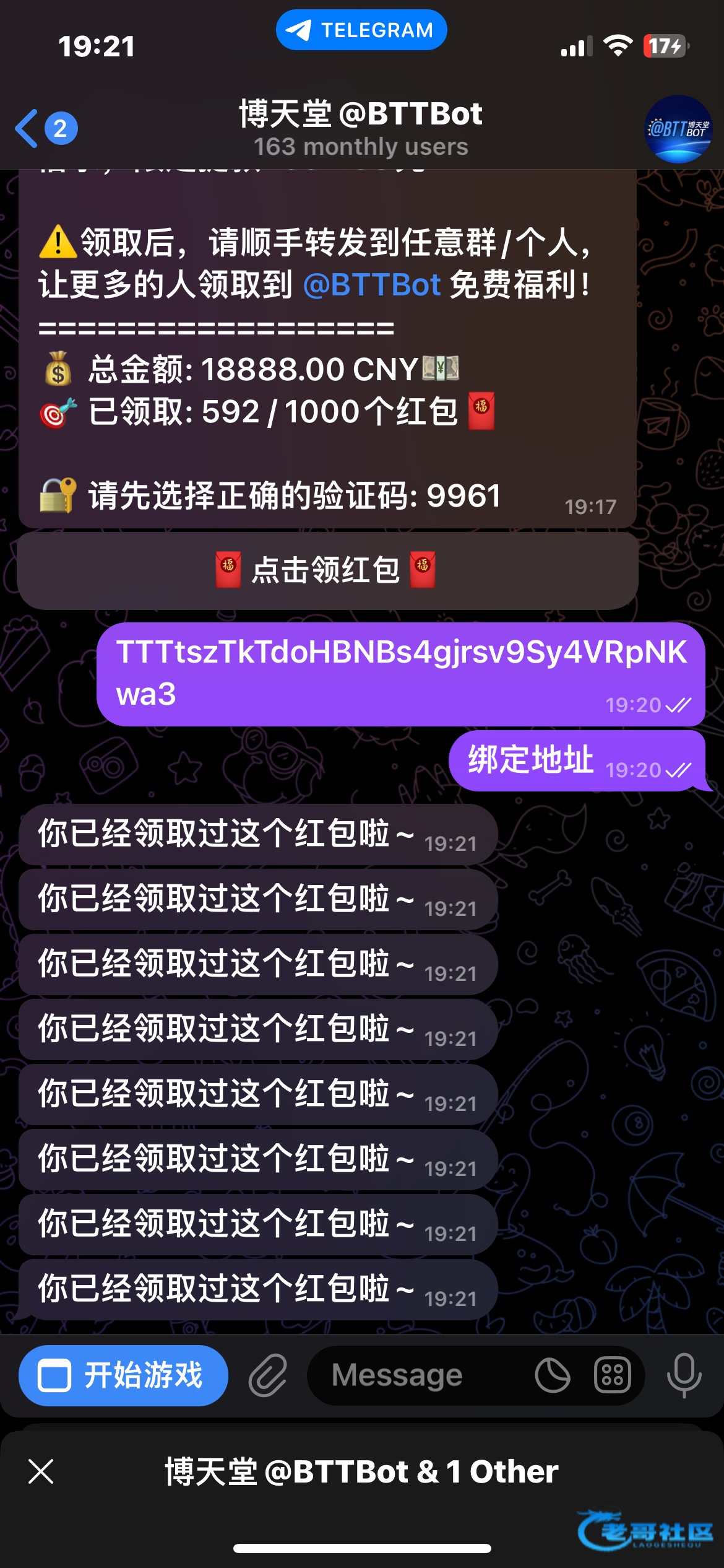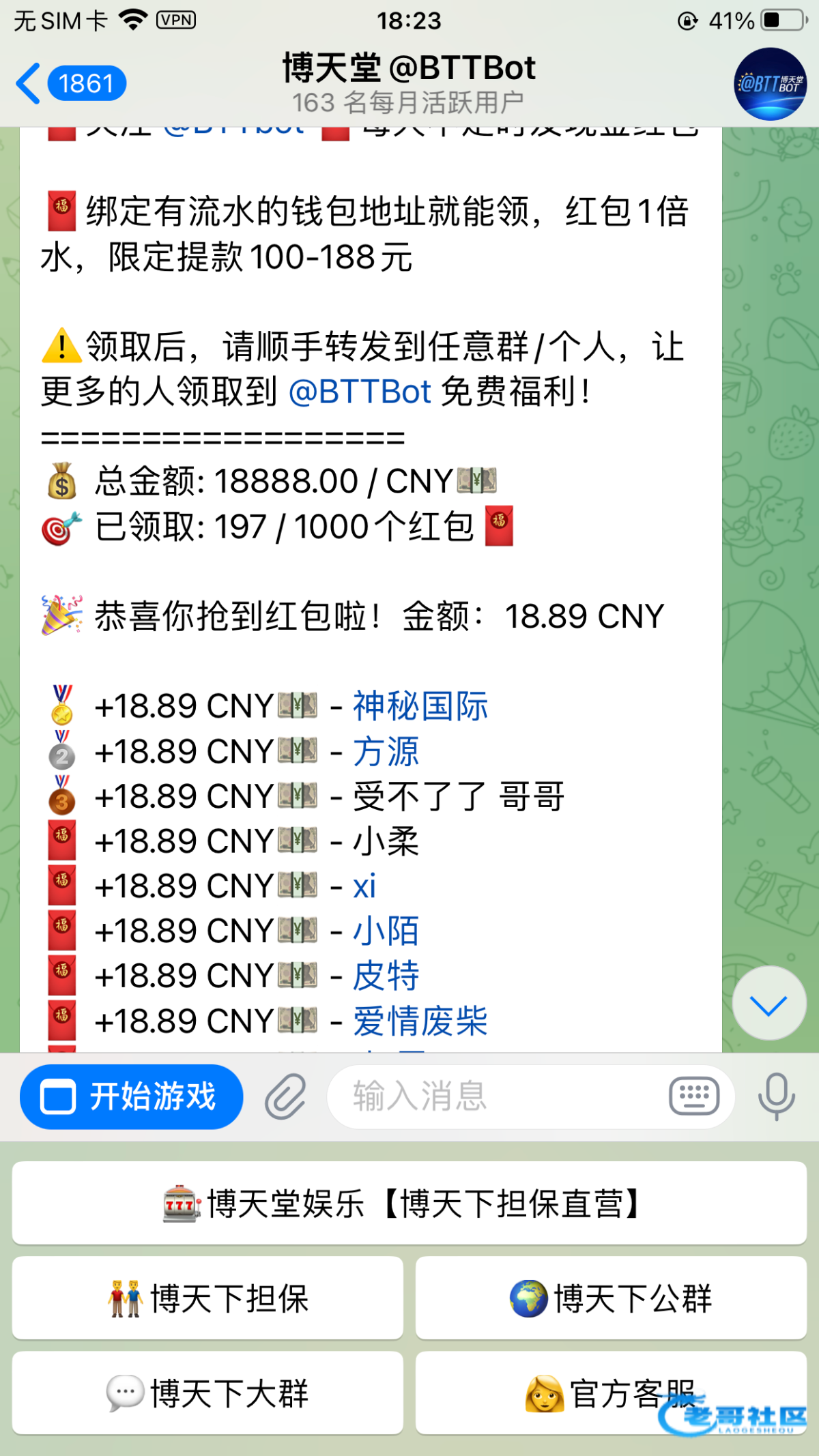 时不时发红包,绑定活跃u地址就行 出款自测机器人@BTTBot