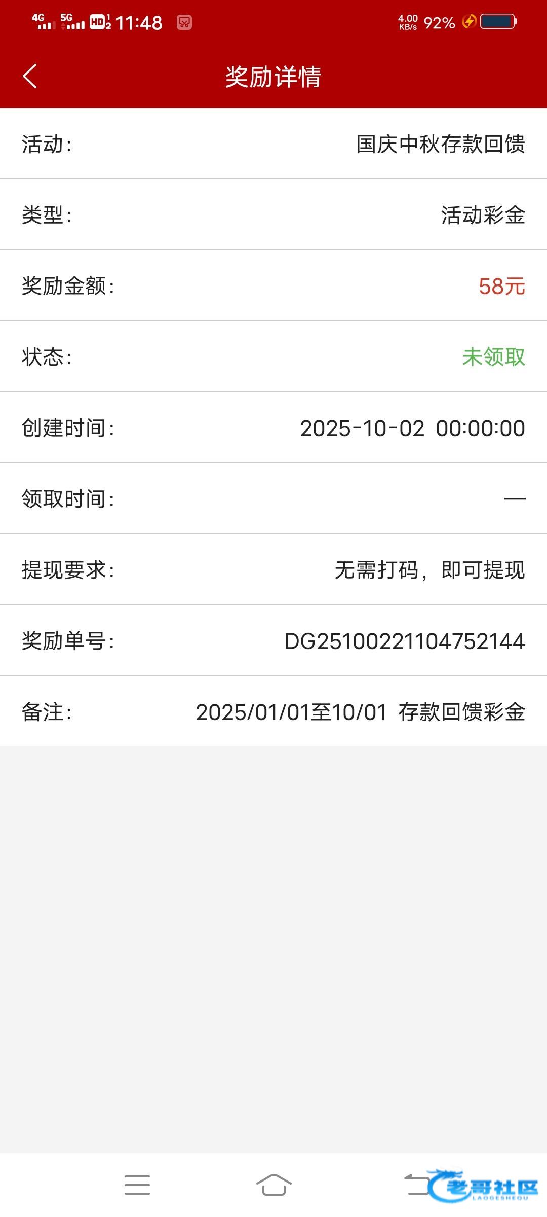 半夜看都没有,刚看有了58。很久也没给他充了,不知道为啥写的中秋国庆充值回馈。底下写的今年1月到10月。估计大家都有。
