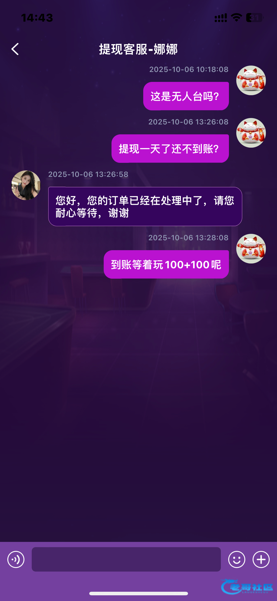 兄弟们,看到1➕1想去玩玩,千万别充值帮你们试水了,充值不到账客服不回复