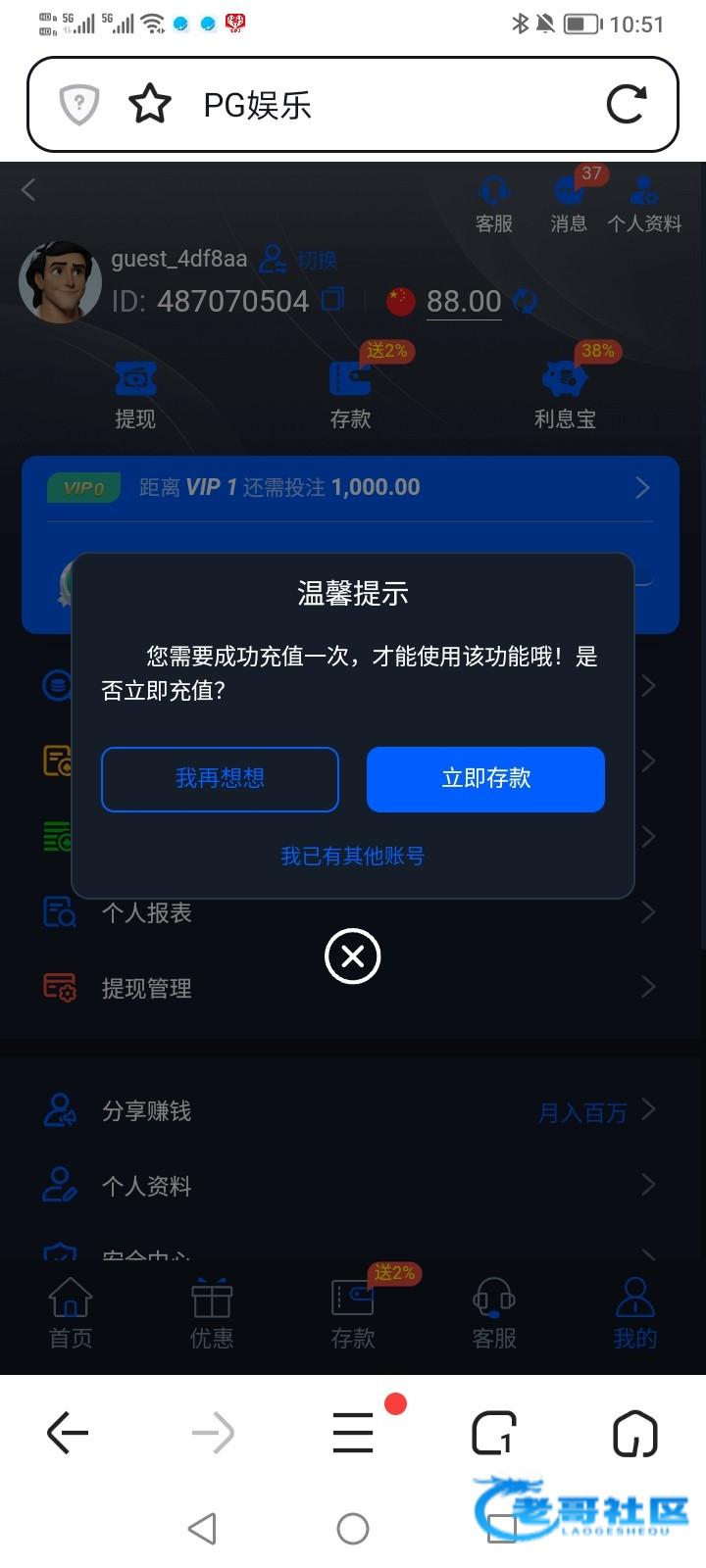 有什么用?送88,要充值才能玩。