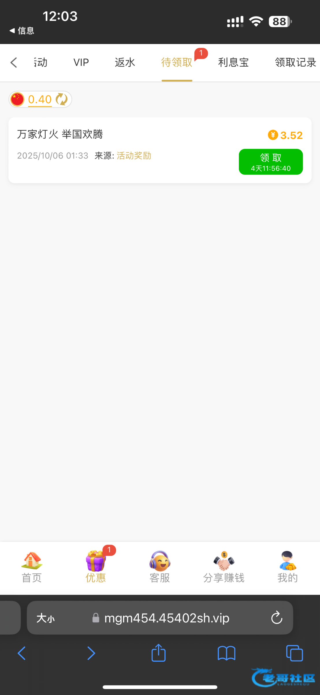 一共充了2700多块 上个月抢到了几次50多的红包 这个月把我全部优惠封掉了 国庆彩金和中秋彩金都不给我送了