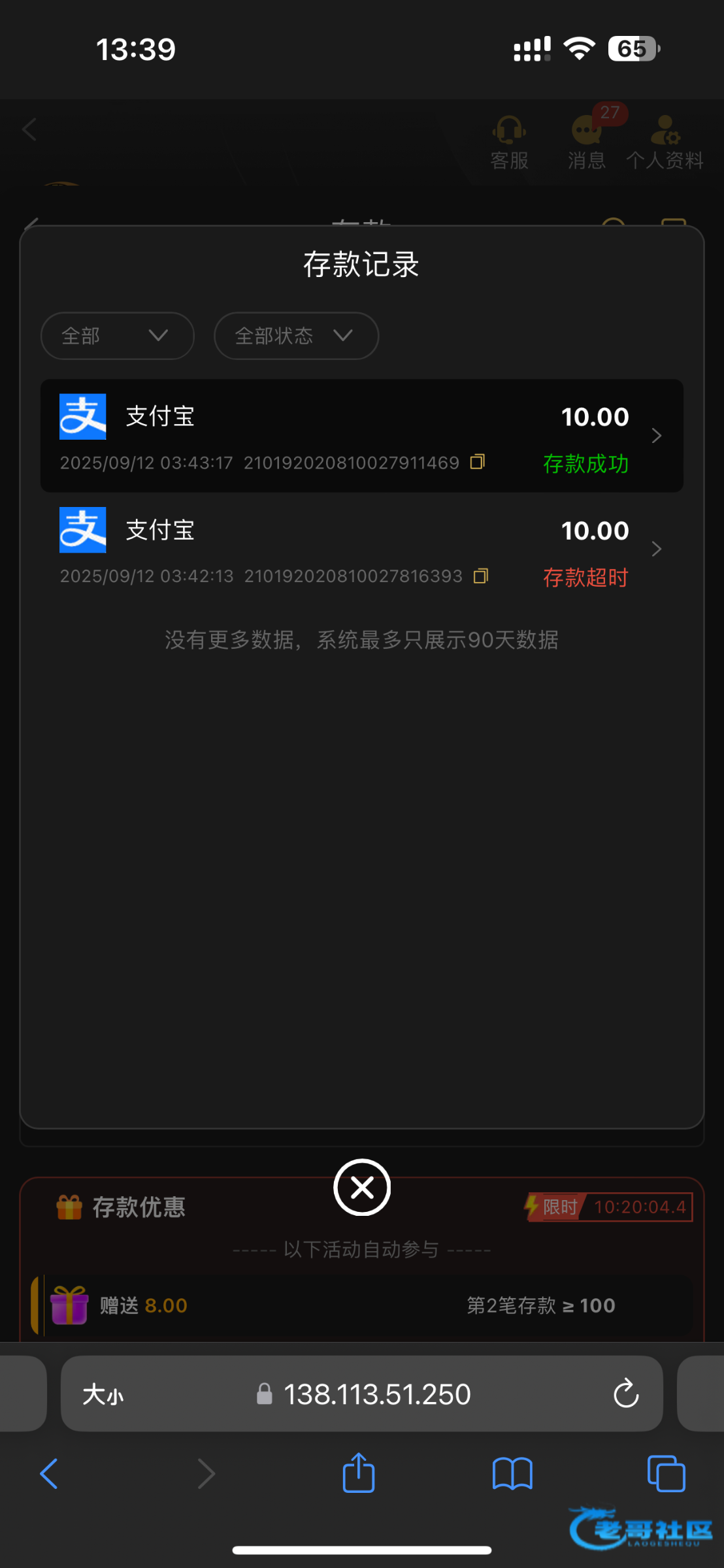上个月12号充值过10块 今天中秋登录回馈了28 ,有充值过的老哥上去看看 595.app 避免老哥们以为我今天充值了 所以我把充值记录图片发出来了