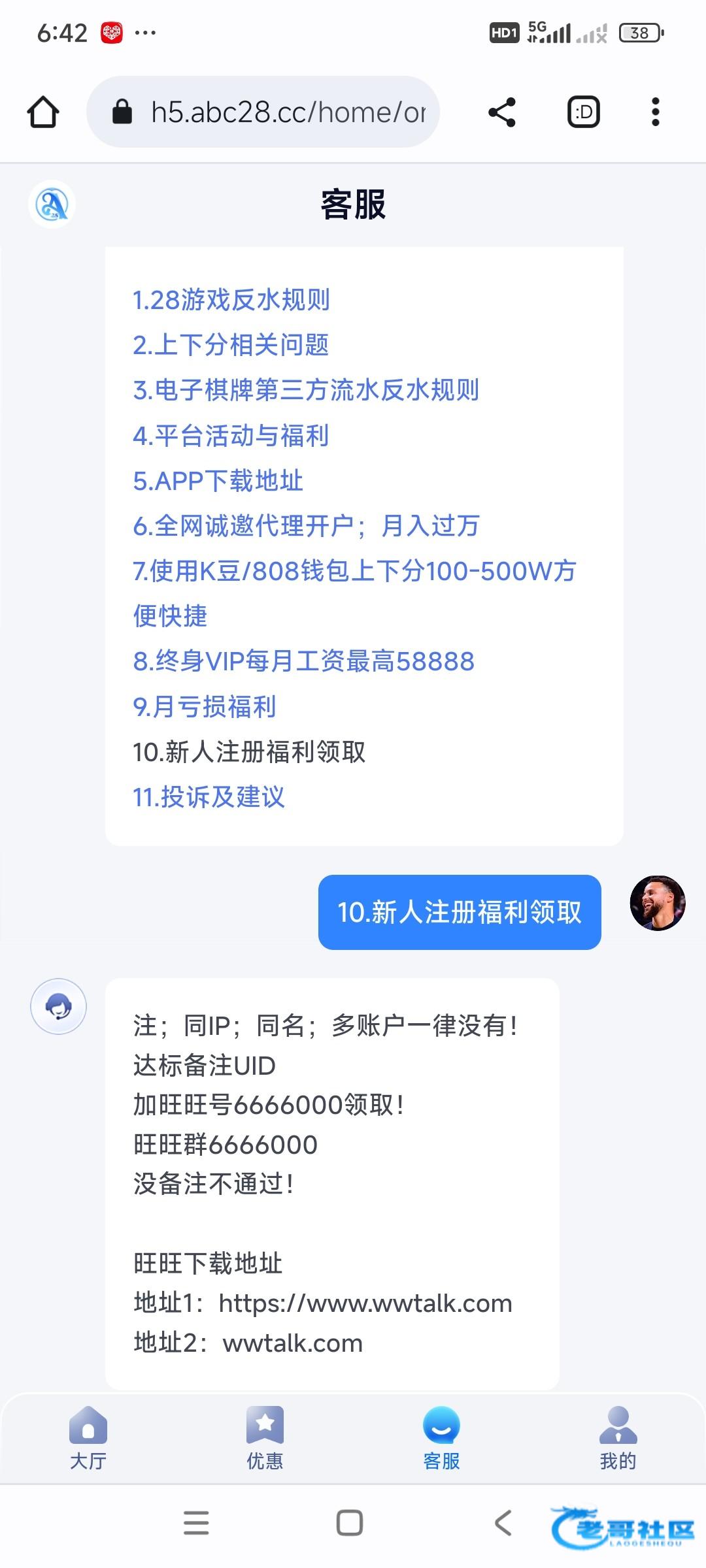 这个彩金客服在旺旺叫宝宝 你到平台说宝宝送一下注册38彩金一天就送了 亲测领到