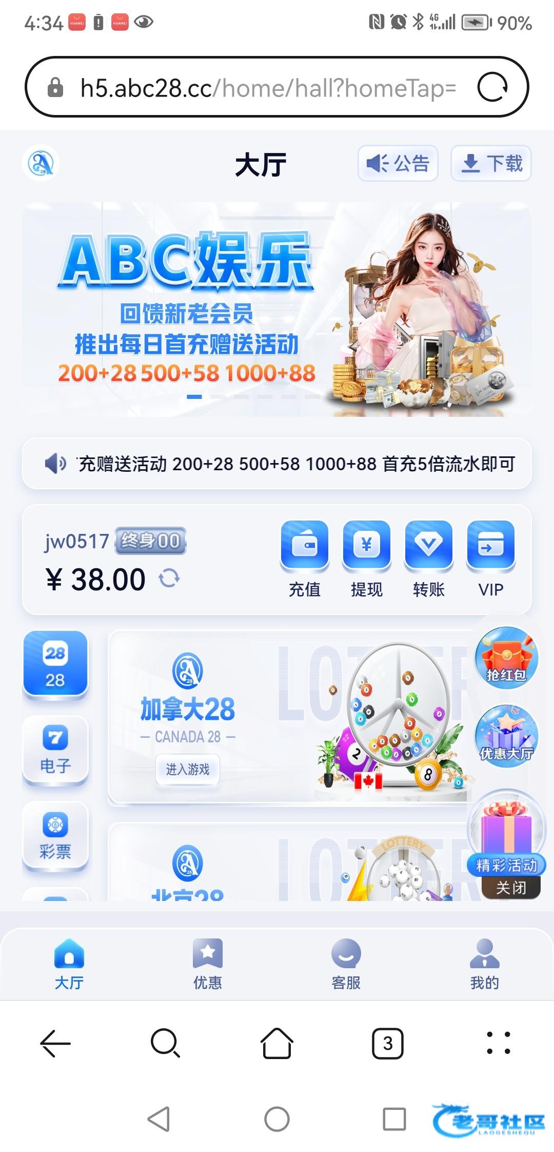 新人也可以去试试看那个活动注册送38还在需要手机号实名和平台实名一致官网abc28.cc
