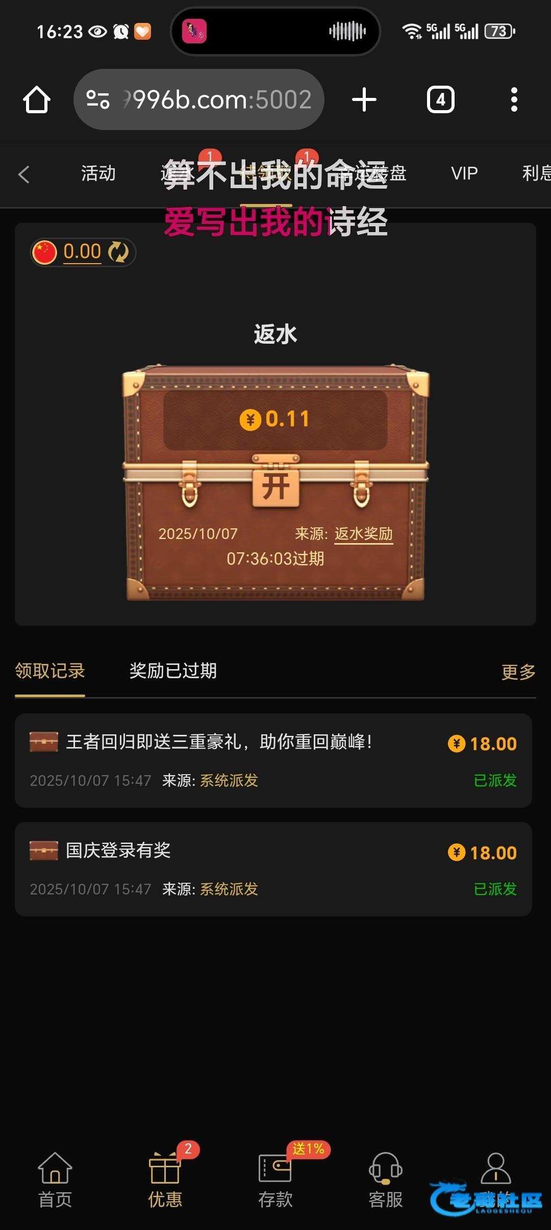 徐志摩 ▶ 沃德发 这平台恶心的,提现一直退回,后面直接把账号数据清零,不冻结我账号,想我继续充值玩 3月前