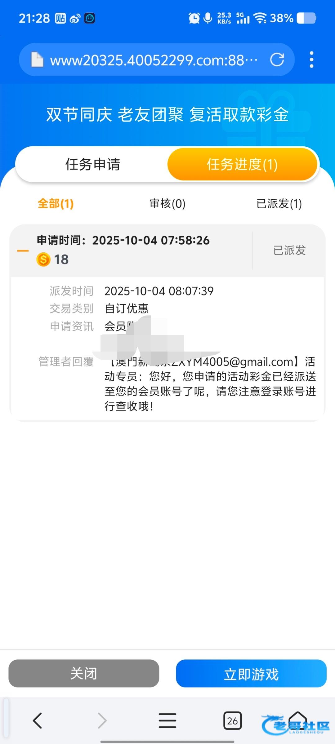 链接:4005.com根据提款记录进行回馈,我一年没玩了,回馈了18,没打出来,有玩过的老哥去申请试试。