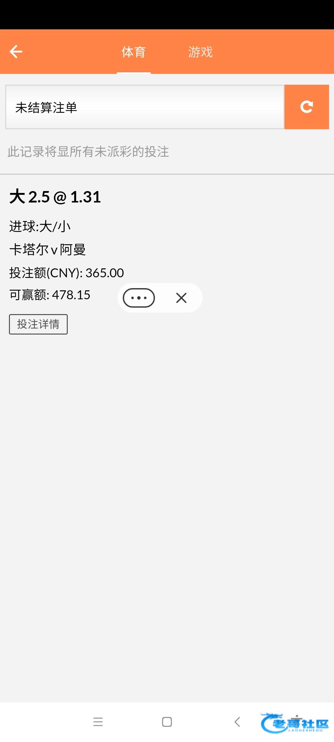 bet365有活动,之前叫赛博,最高满赔365元,我买的大球输了,赔付秒