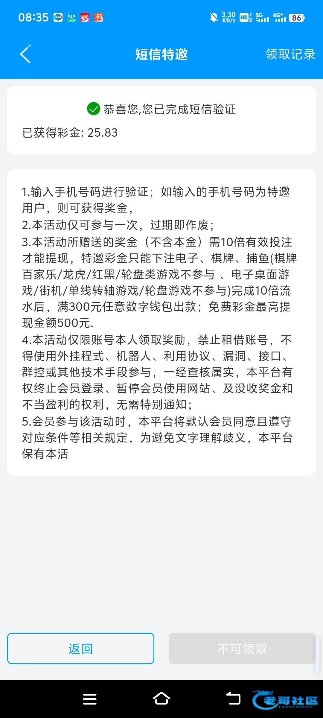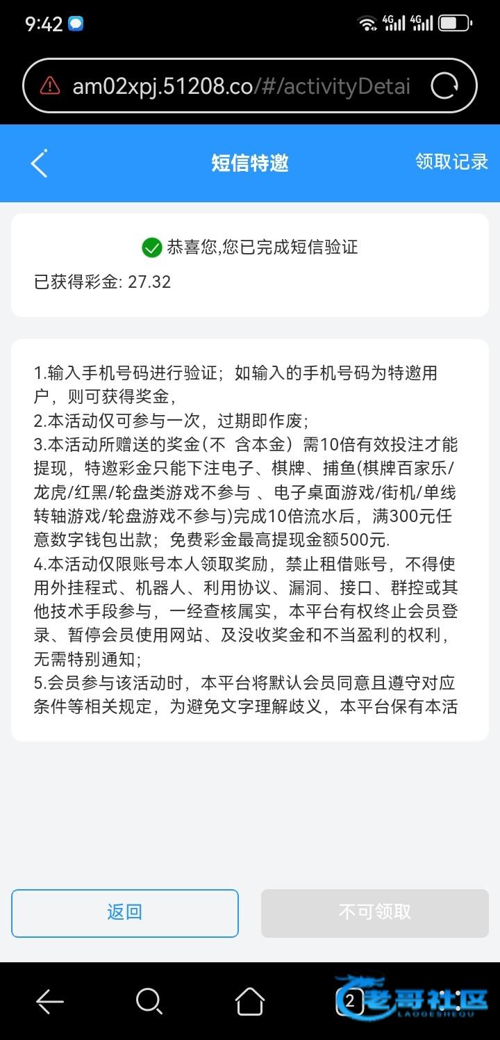 短信特邀彩金以前领过,提过,充值过!得吃的老板赏口饭吃。谢谢老板,祝各位老板一路长虹链接4627.com