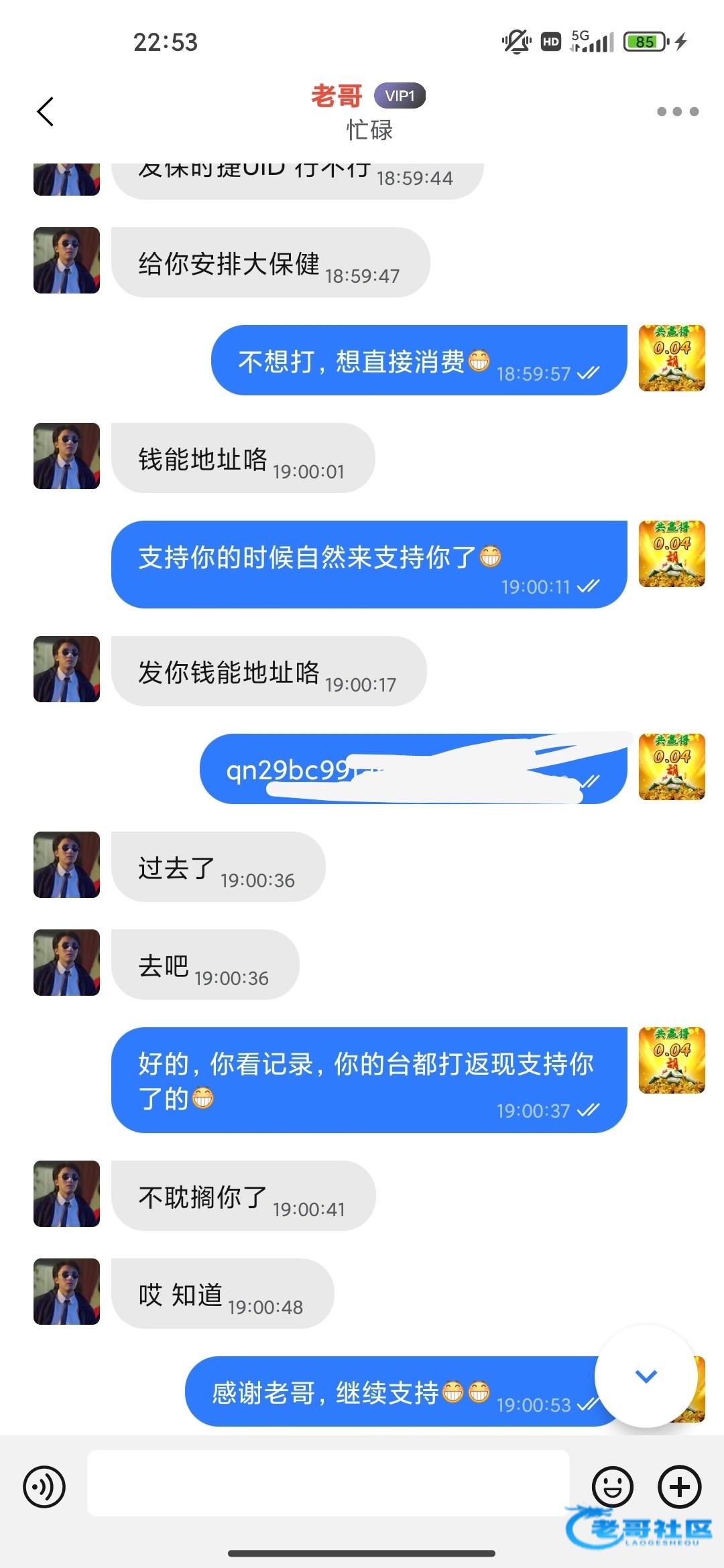 一直支持老哥,抽奖从不中,最近也一直输,运气不好,今天看到老哥给别人处理的帖子,我想起了上个月有个台罚我流水打没了就问老哥,然后老哥安排了大保健,老哥做人没毛病,继续支持就完事了,也希望老哥的大保健带来好运!