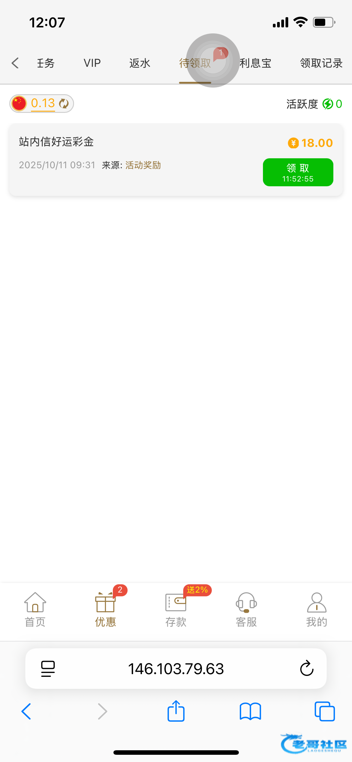 站内彩金领过来再去看看,今天又送了,连续领4天了