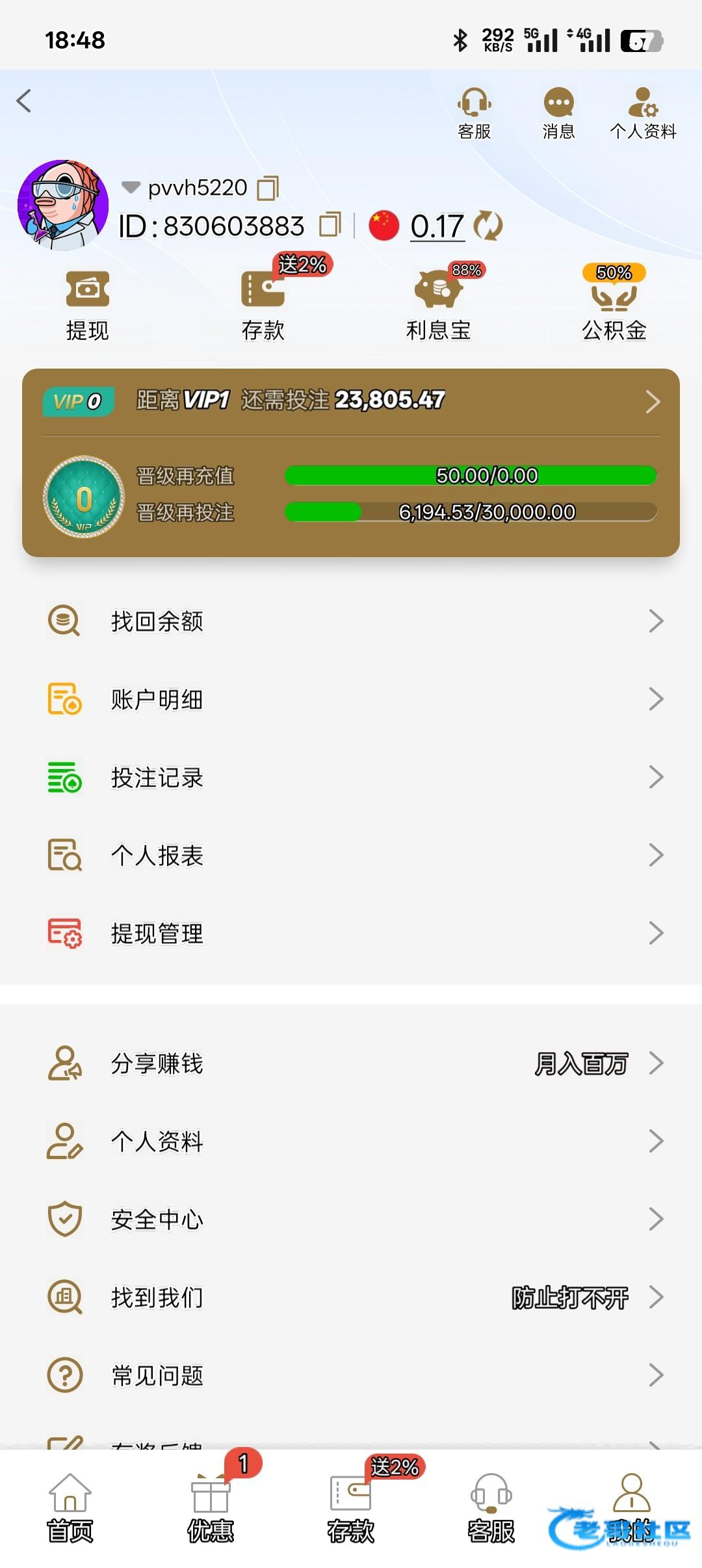 这台子咋说呢 时黑时不黑 反正你找这个客服不给你提 你就找另一个客服 另一个客服说辞又不一样 第一个客服开始让我冲1000打一倍才给提 另一个客服又让我只需要打1000流水就能提了 结果后面打了1000流水真给提了 然后后面就再也没黑过 总共就冲了100块 薅了这么多了