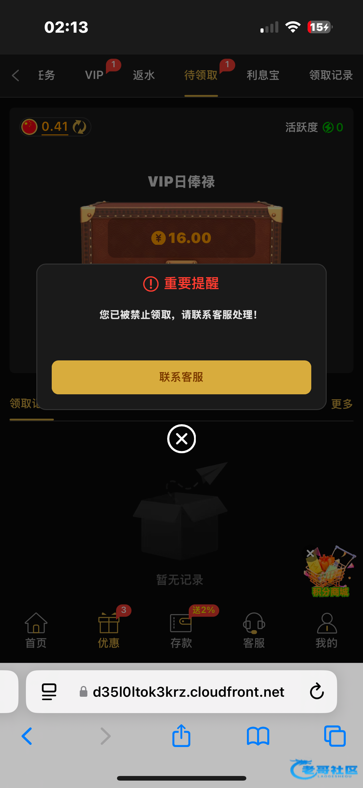 禁止领取了,哈哈,每天领16想啥呢?
