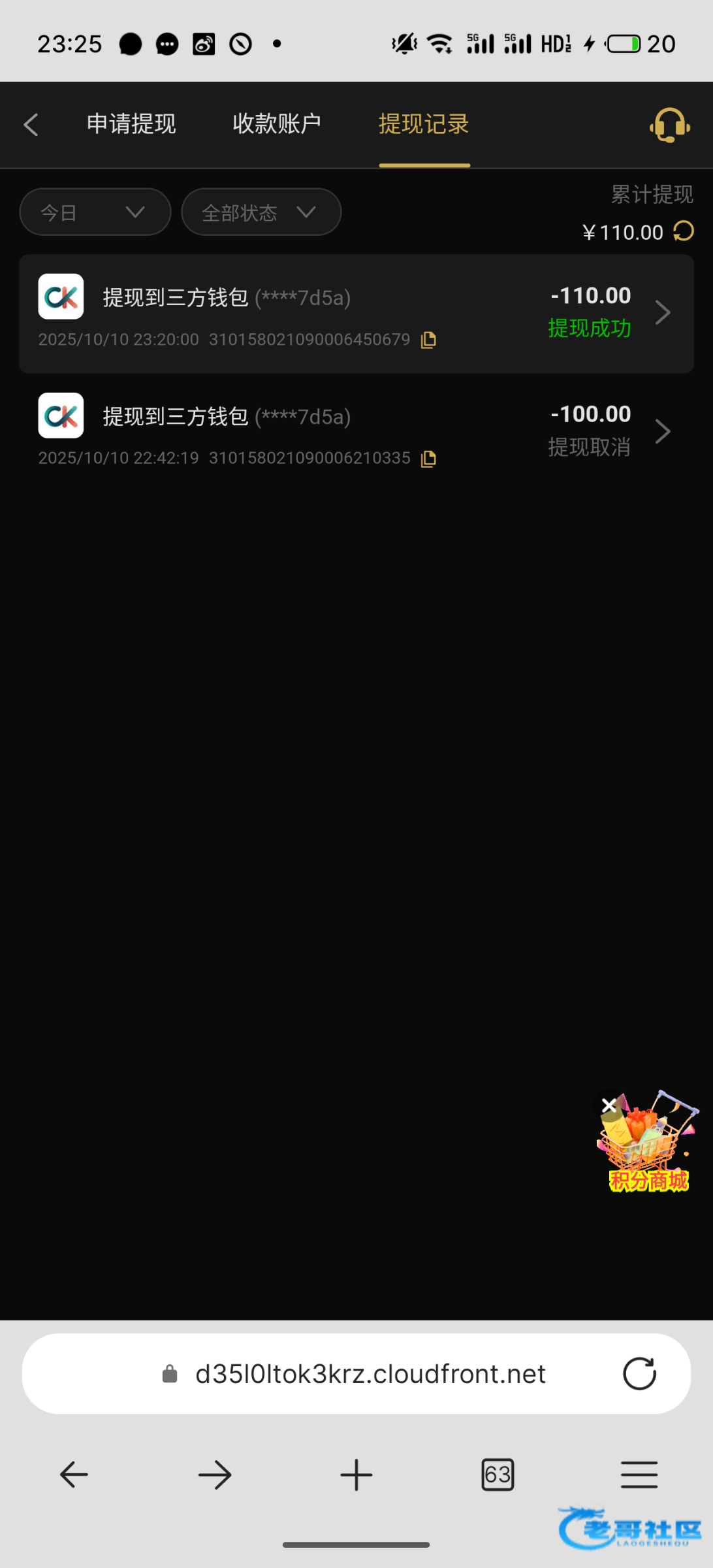 黑台,第一次提现封号半年了