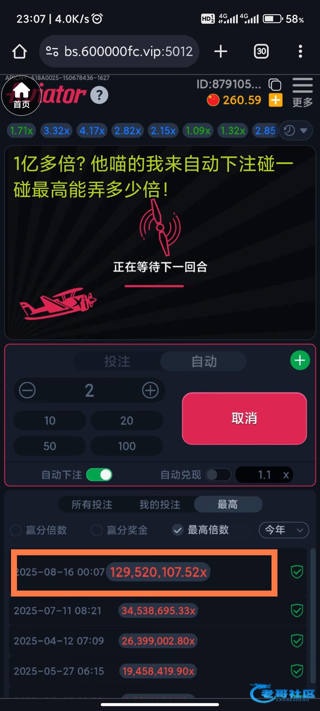 兄弟们看到这个一亿多倍我他妈心痒难耐,我特么也来试试能弄多少倍!你们也可以去试试wg模板区块链里面的wg飞行员。他这个和一飞冲天一样都是统一开奖的,不存在什么你压就杀你这种。要不就是通杀,要不就是胆子大的那批人发财了