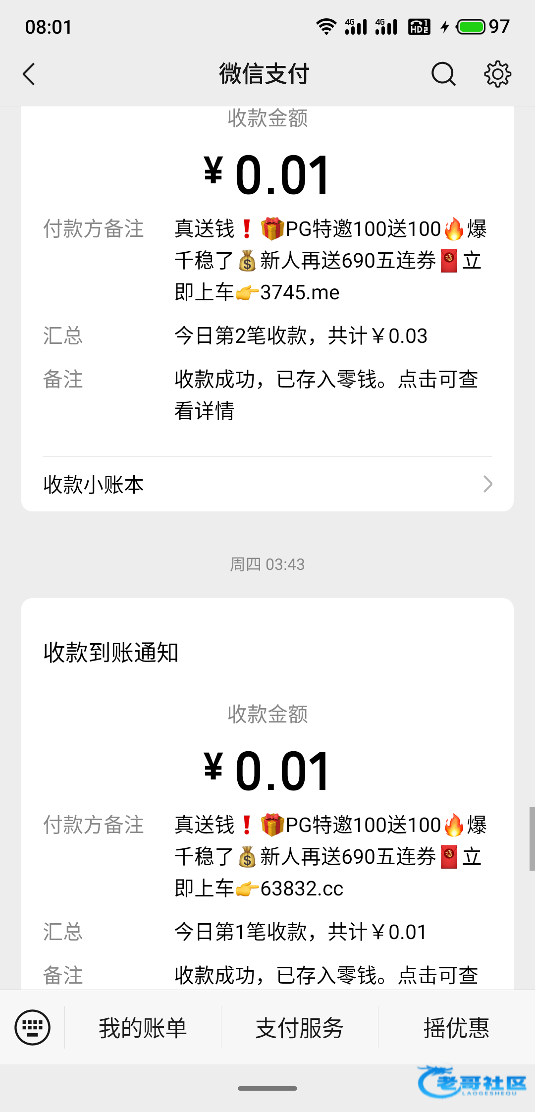 妈的,微信天天收这些1分钱,一天收他妈几条,十几条,微信都给老子搞风控了,妈的,发也不发多一点,1分钱发1块钱也好啊,关键是没一个有用的都不送,都是他妈的没实力的狗庄,烦死了