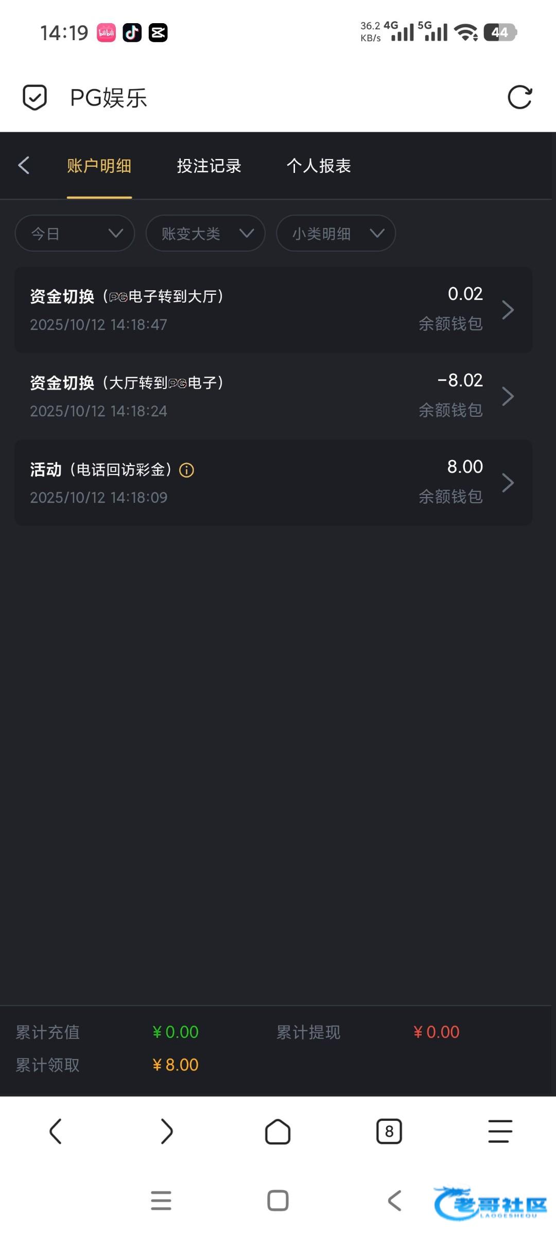 出款情况:自测(