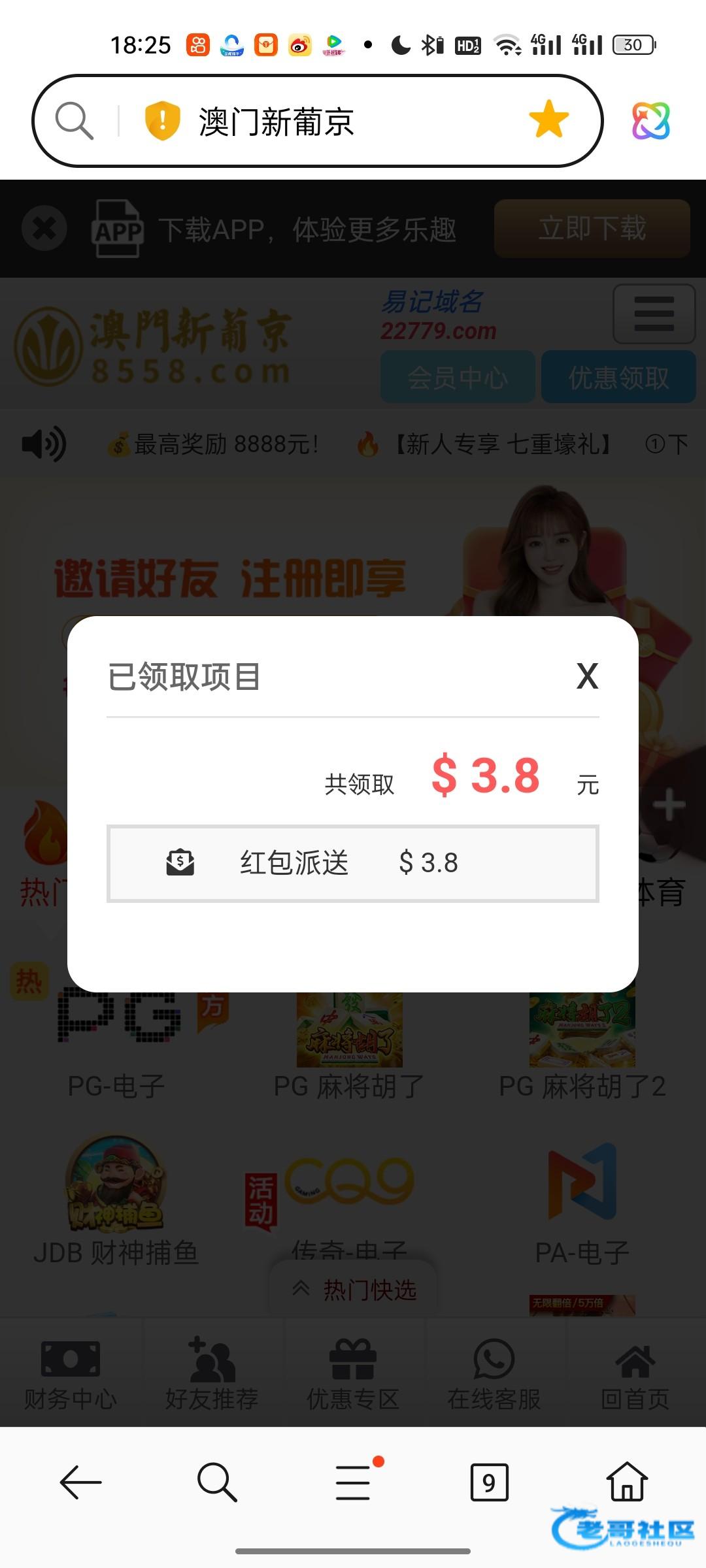 8558.com,不知道什么彩金,登录就有,一键领取