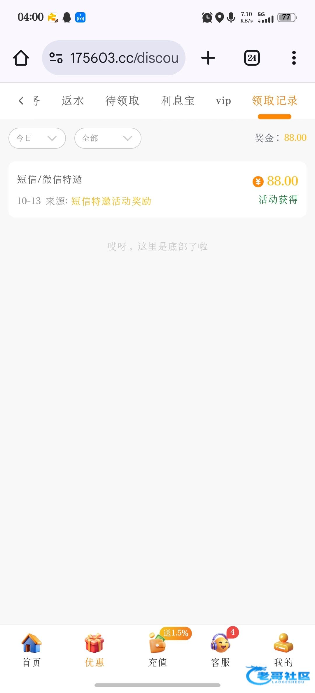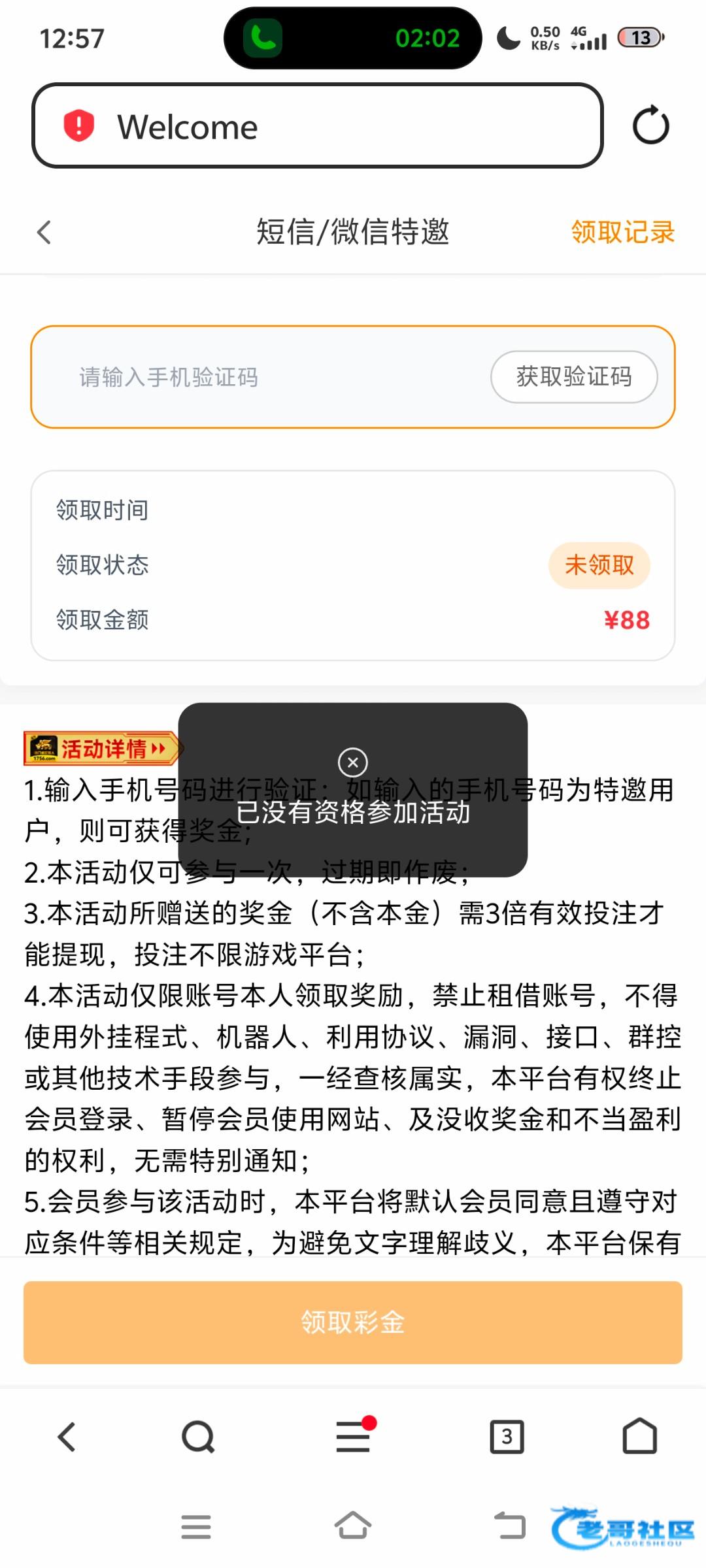 领到了 老号也是显示以没资格领取 可能没绑定手机然后我用这个手机号又注册了一个 最后就提了100