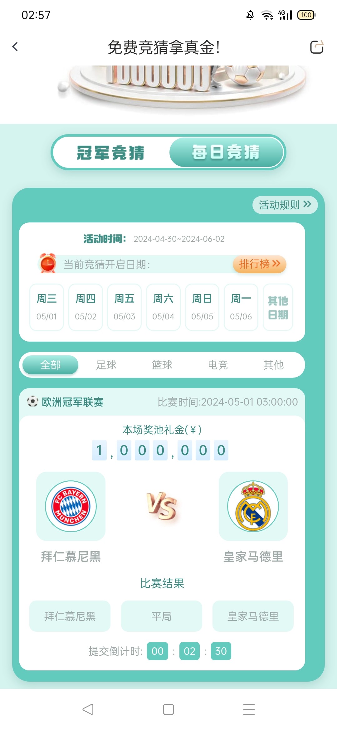 教你们怎么选,首先他们很多平台的赛事竞猜都是一样的,你可以用两个平台分别对猜。这样你就百分百可以稳赢一个彩金,目前天博有,爱游戏有。华体会有,估计都有,开云不用去,基本上黑你,要链接论坛搜一下就有,还有不要充值白嫖即可