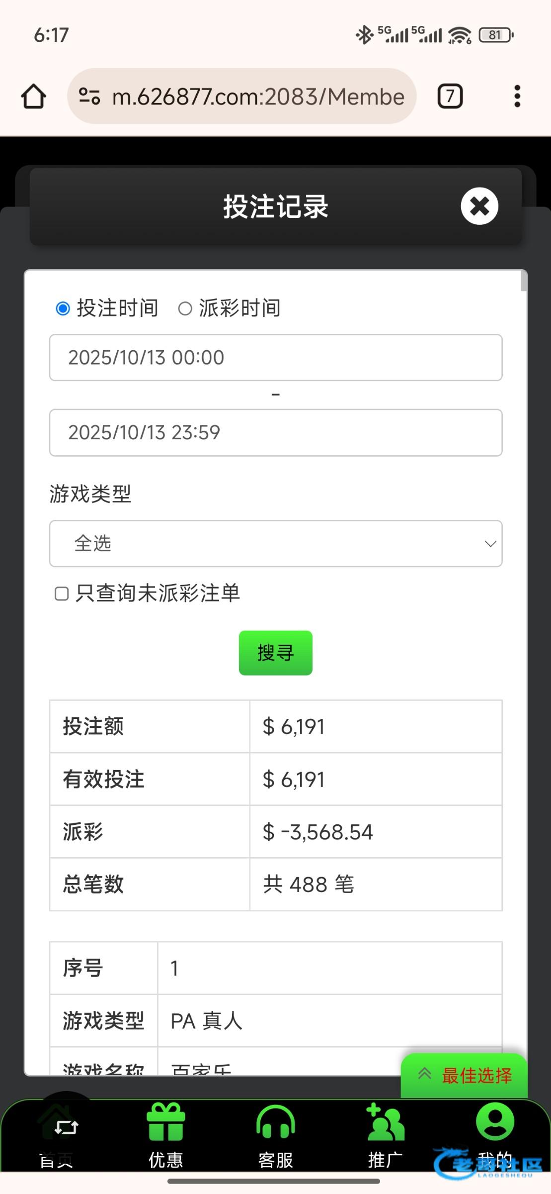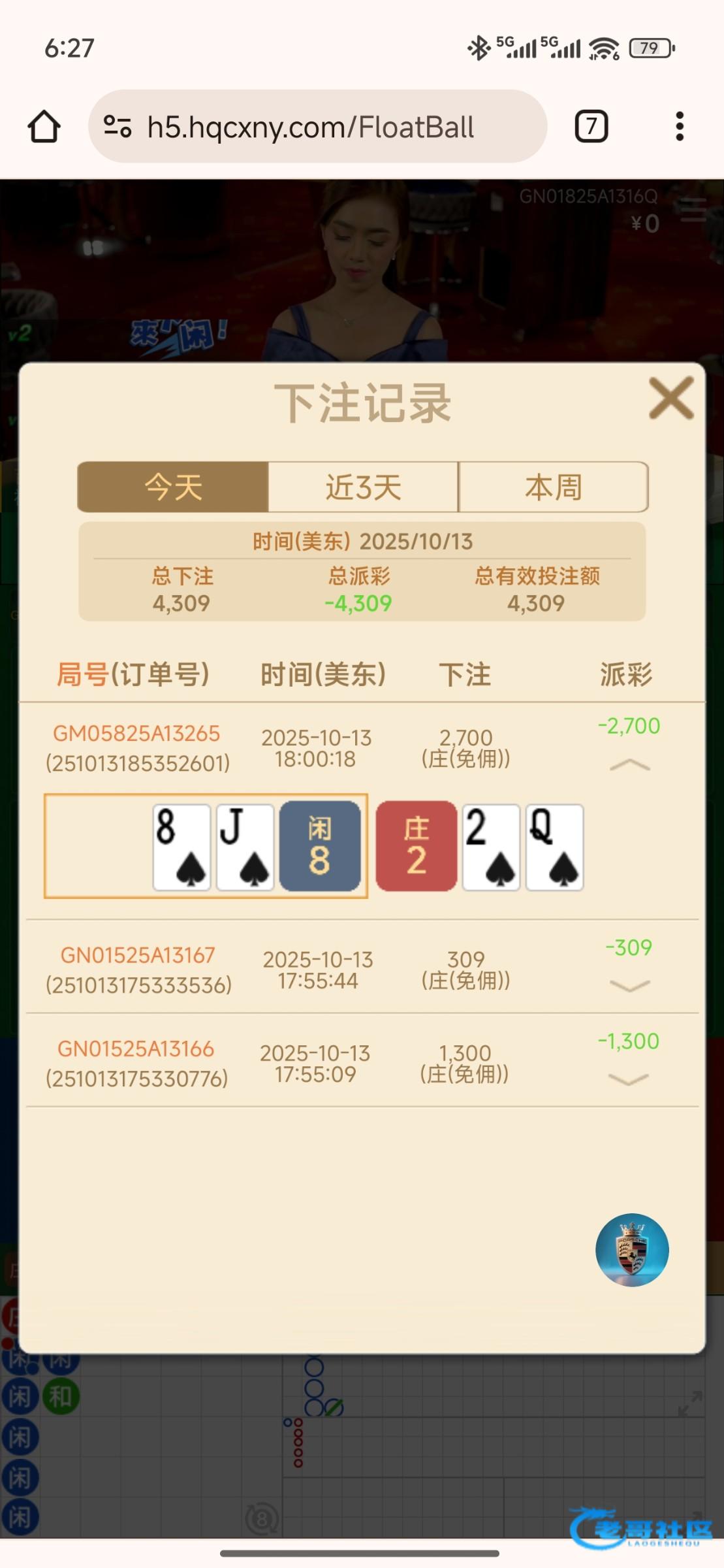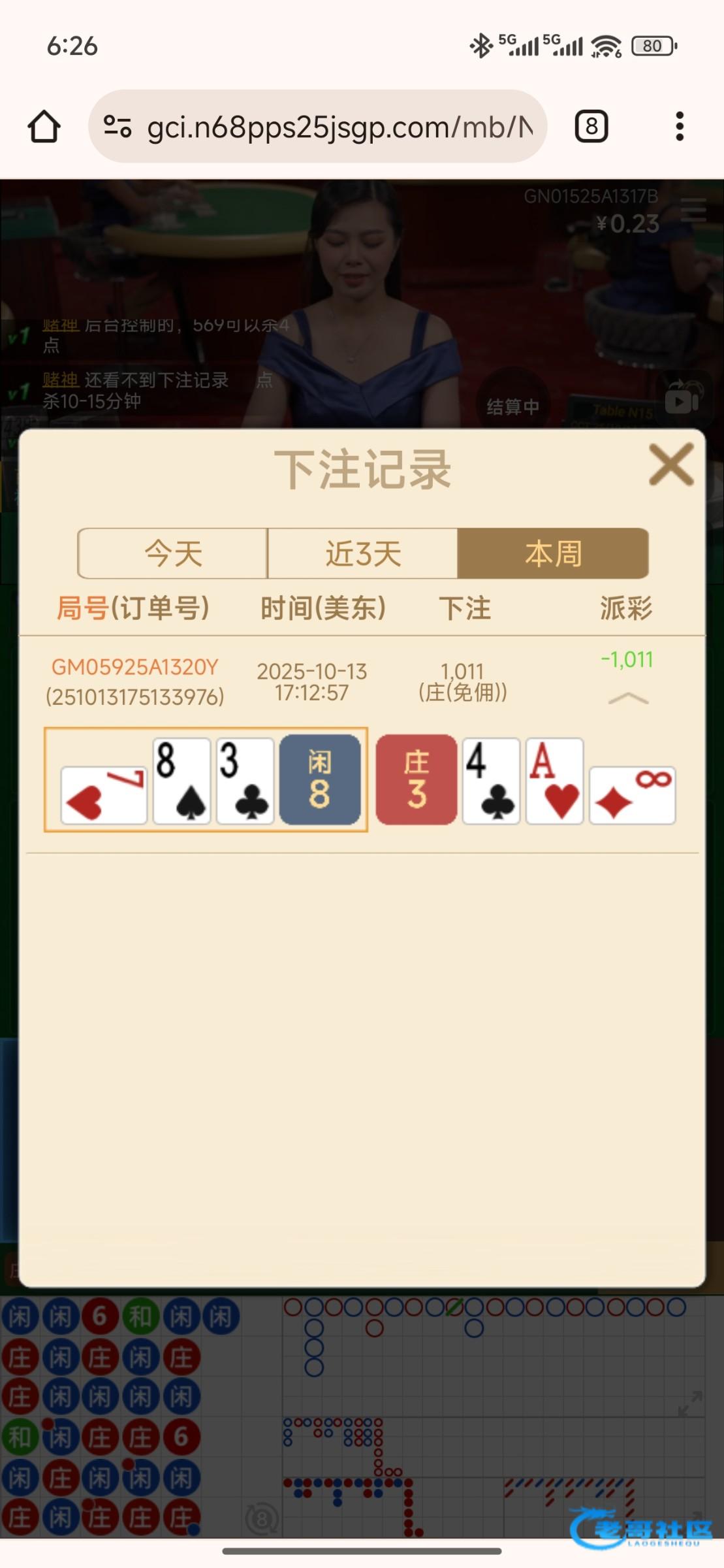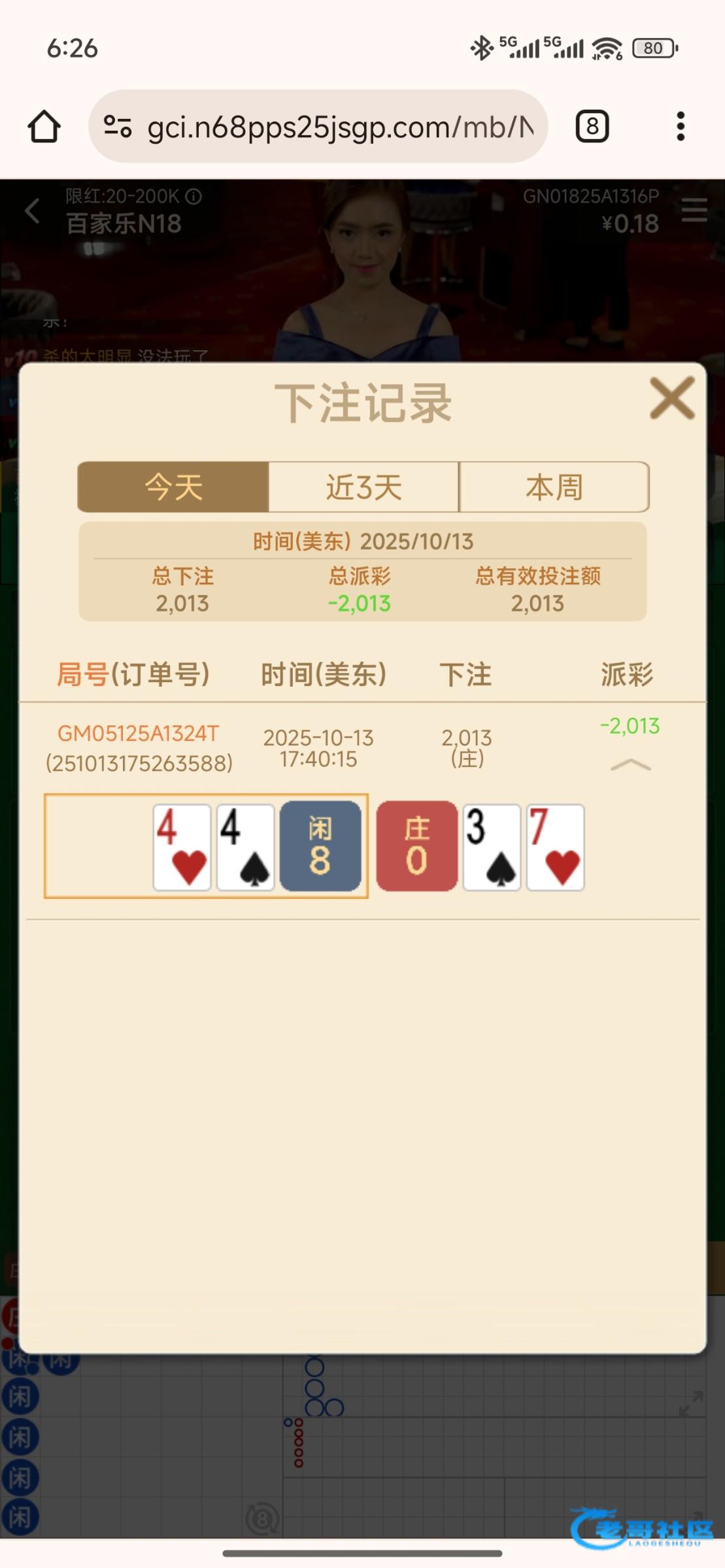 又死在百家乐身上了一把没中