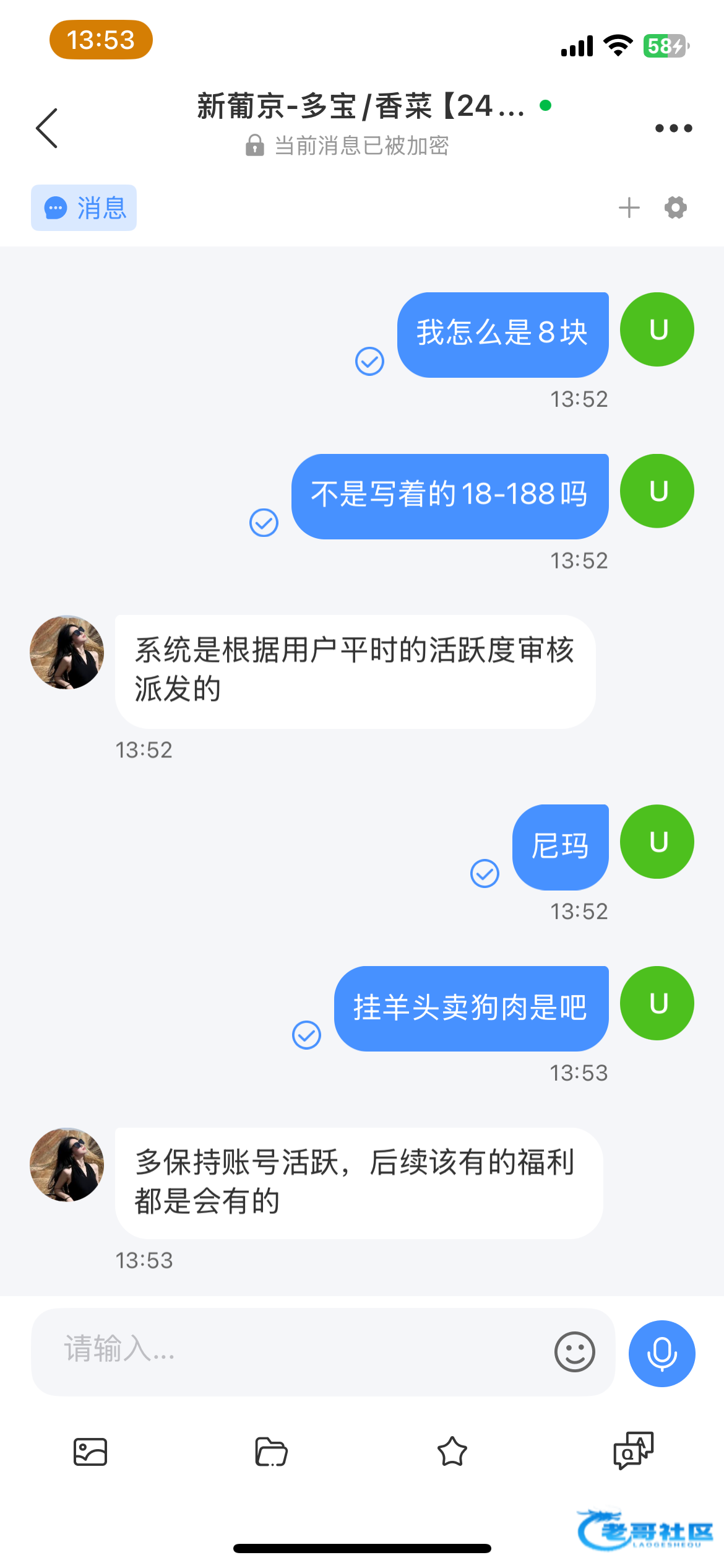 以前就加了今天给我发信息了狗日的给我八块