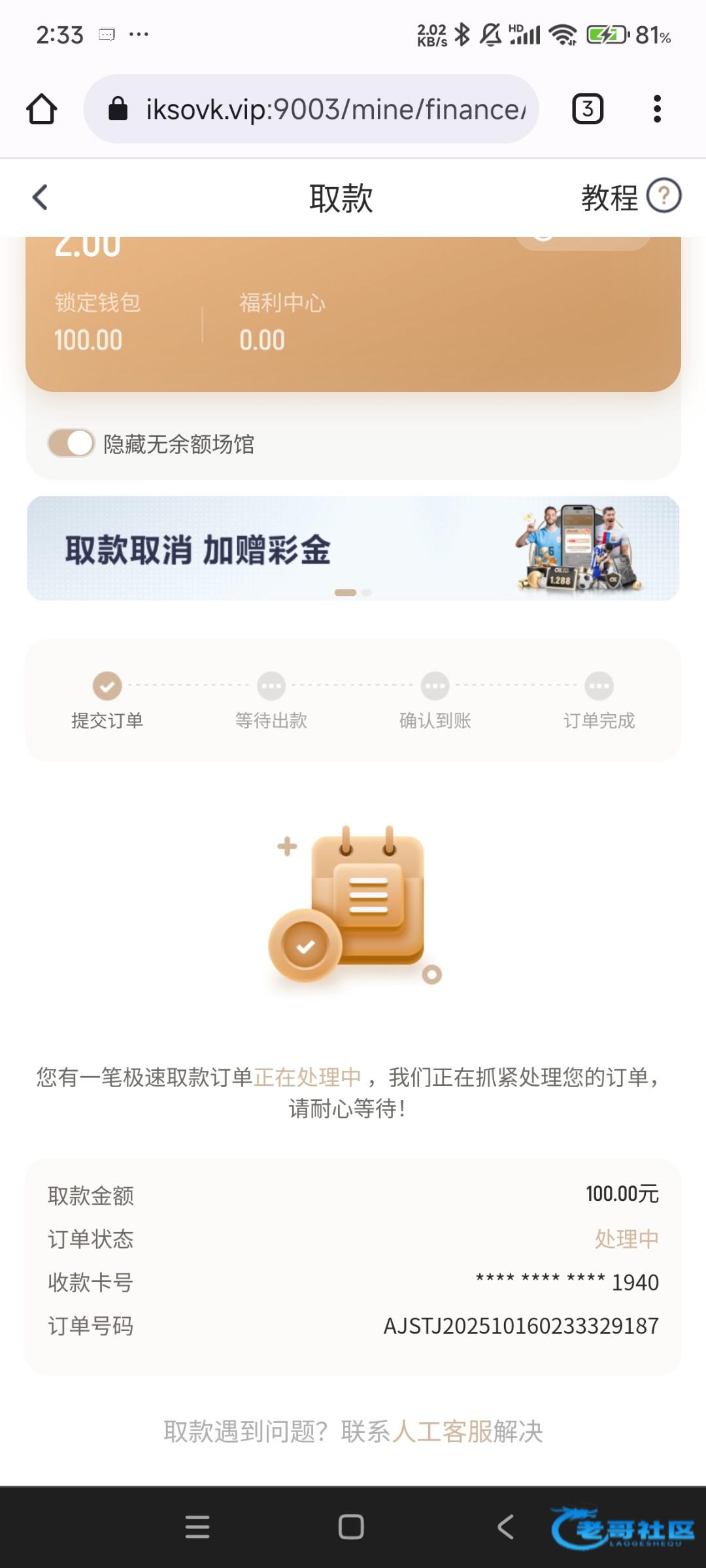 哈哈/7点取款,8点半发帖还没成功到账,就跑来发帖