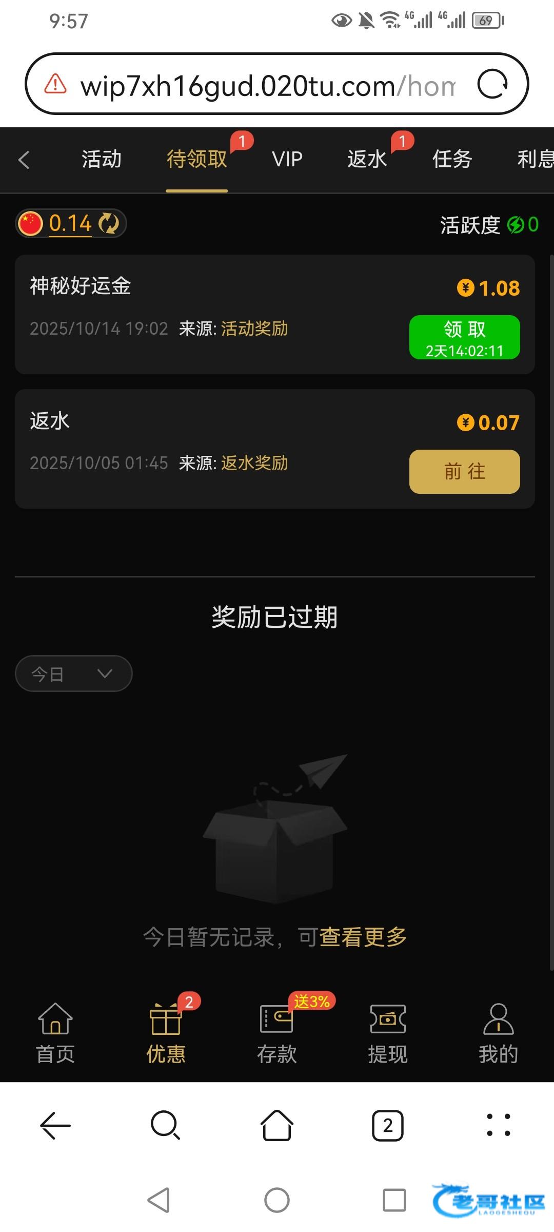 这是傻逼台,发个神秘礼金,领不了,说只能领取一次