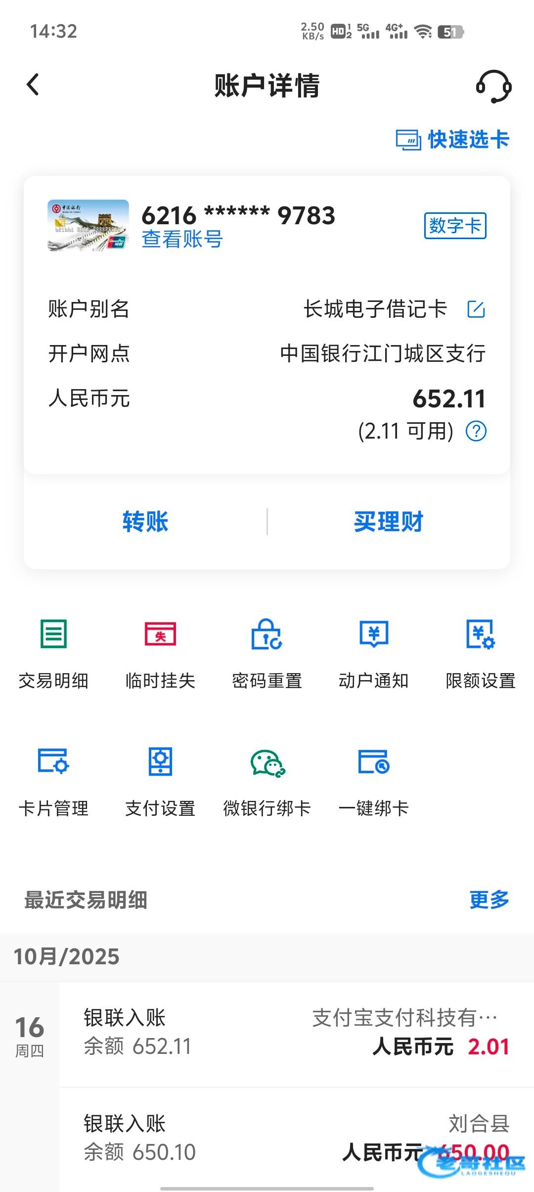 刚刚白嫖珊瑚直播650,但是一进账余额到了这650用不了了,也没提示什么,卡也还正常,前面提的100还能用,我这是电子二类卡,有老哥知道怎么回事吗