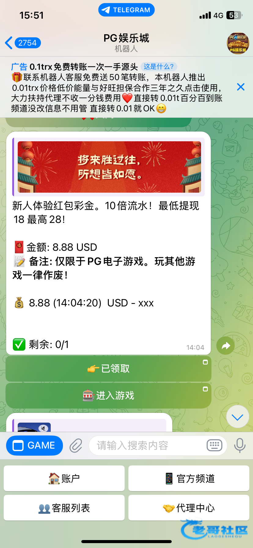 送8.88u @pgYuLeC_bot 机器人 注册好从机器人进飞机客服碰瓷就行 要来源 人多黄了别骂