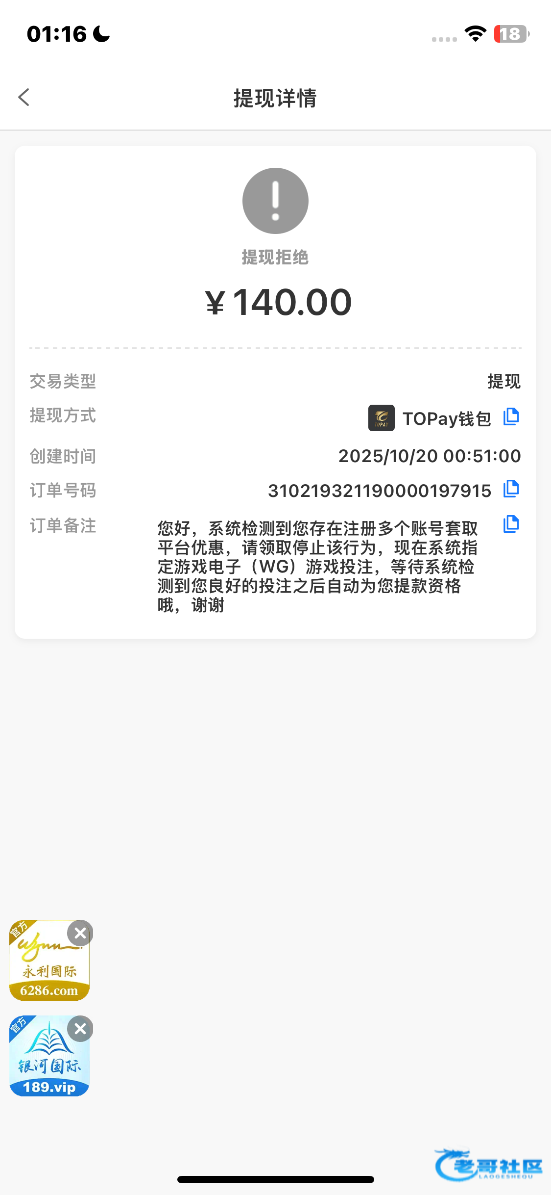 有点黑  被罚20倍流水,