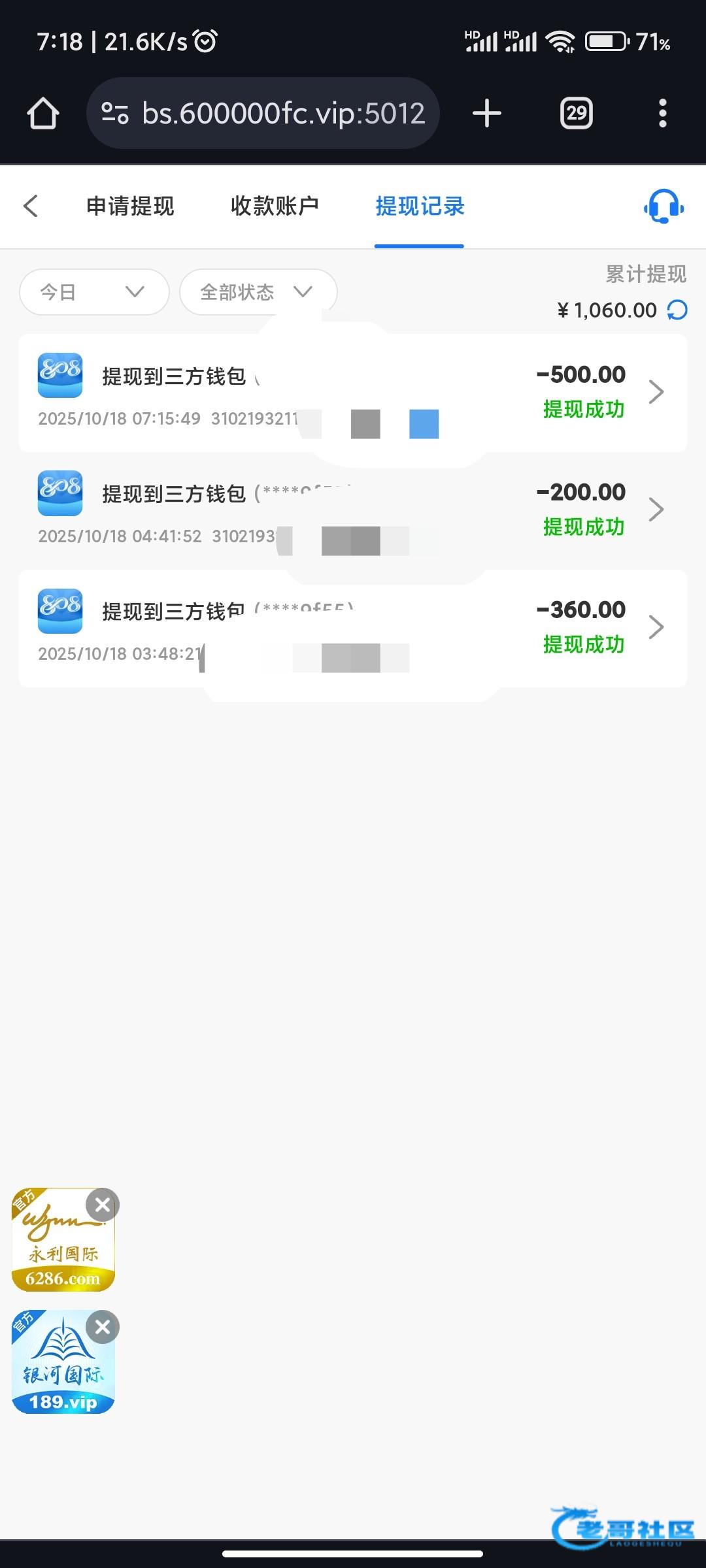 这什么记录都没有,转换的充值的或者赠送的都没有,上去就有六百直接提现?这不是妥妥的狗庄派来的是哪来的