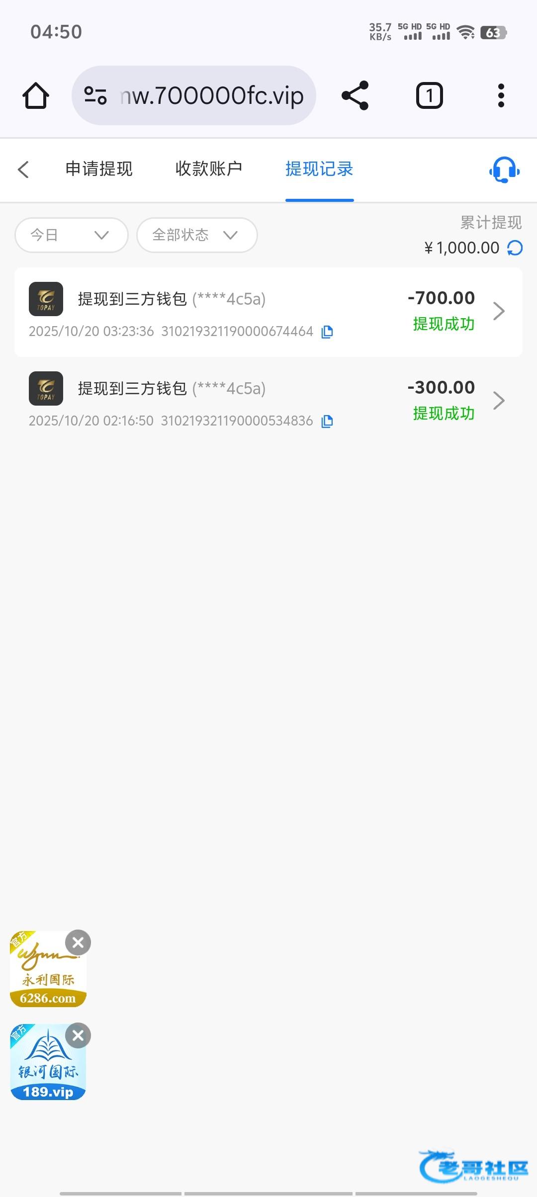 提现300到账