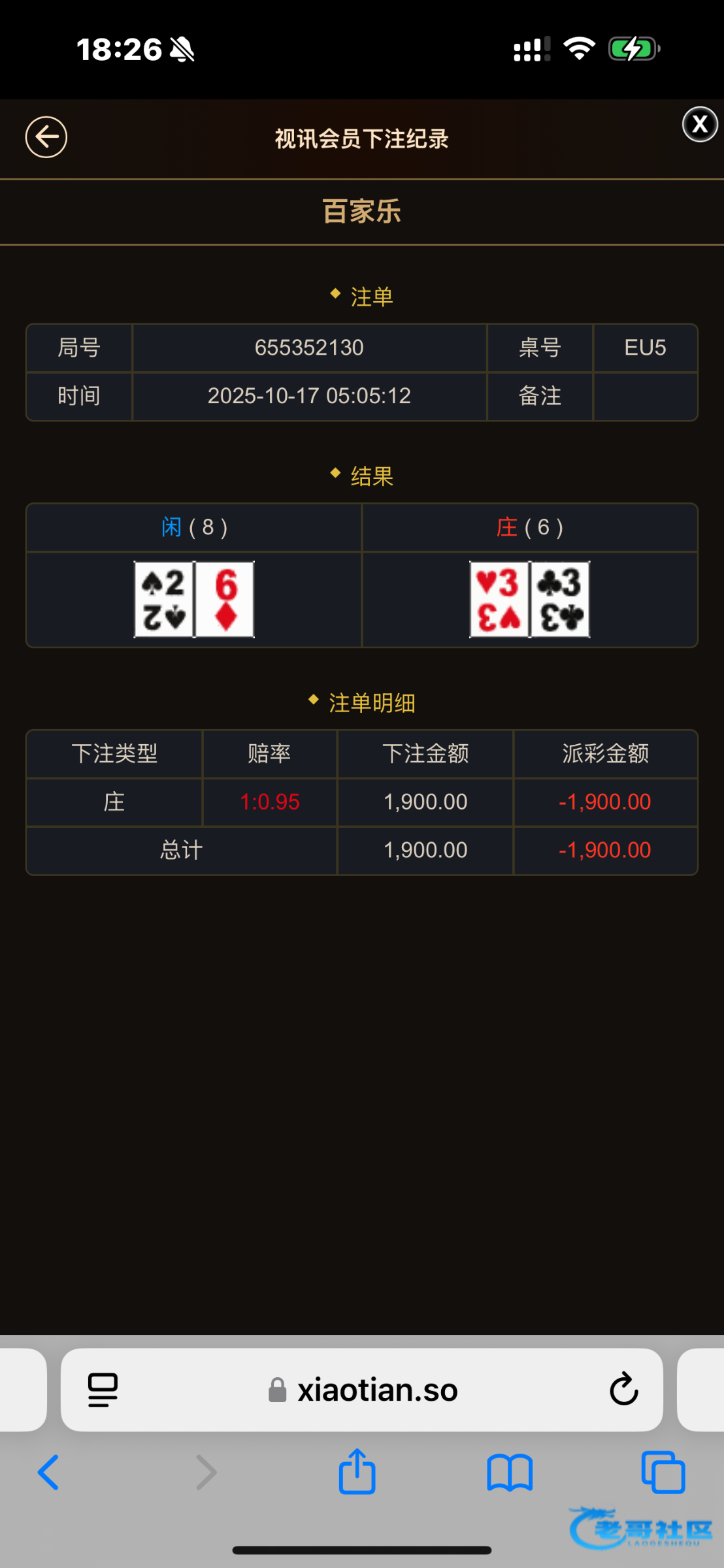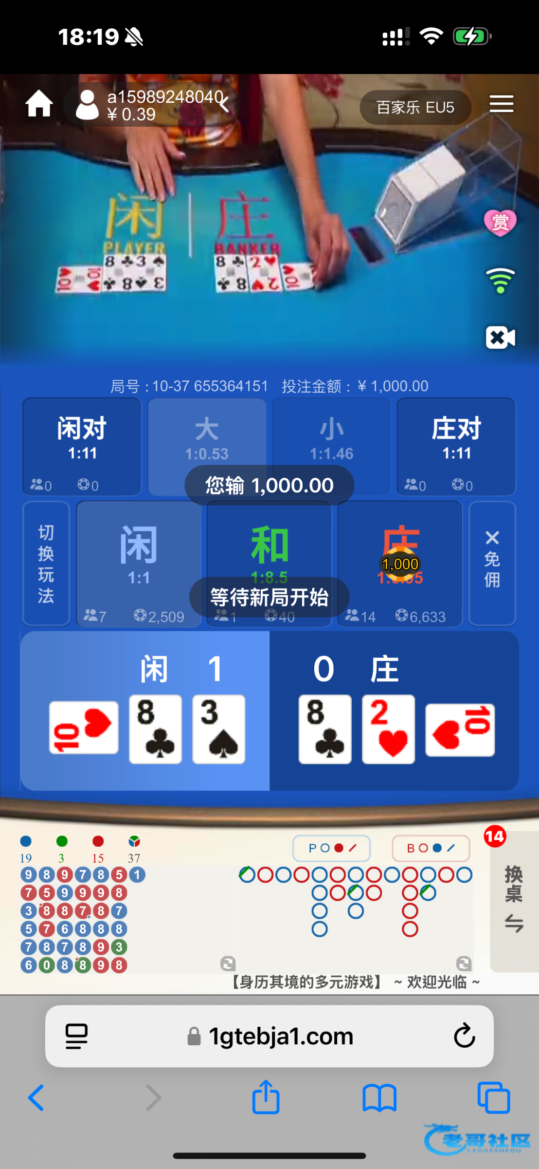 我就是从这个bbin开始输的,本来ag还能有来有回:玩了bbin,100吃到1万:为了这一万不到一个月进去26个:bbin也真的是没有路子压什么杀什么,而且自我感觉下注后它的开牌速度非常快,直接点杀多过补牌杀(从那之后bbin一把没玩)