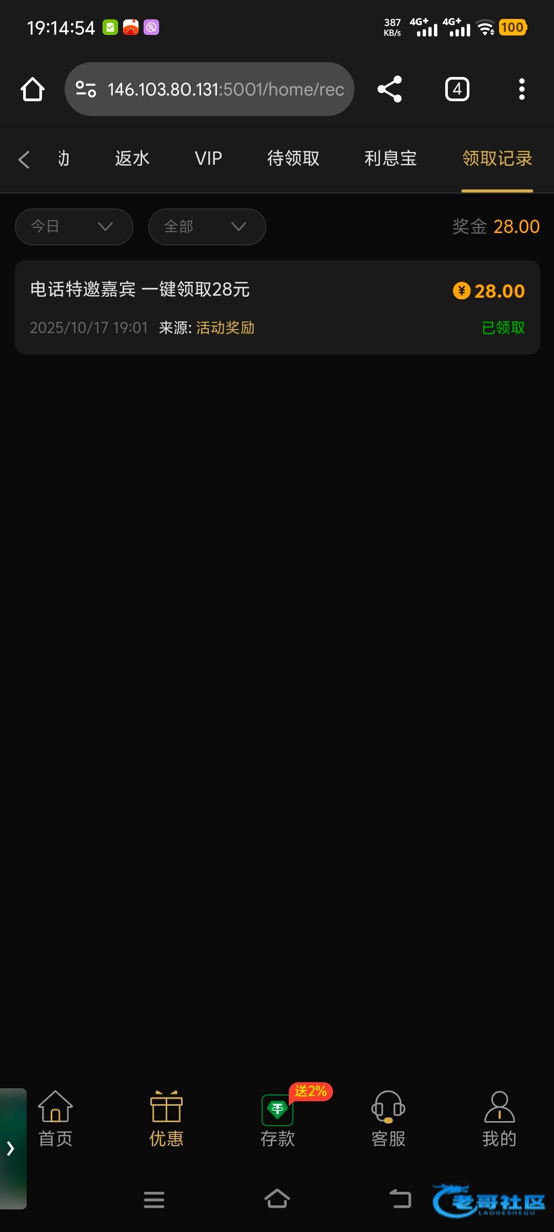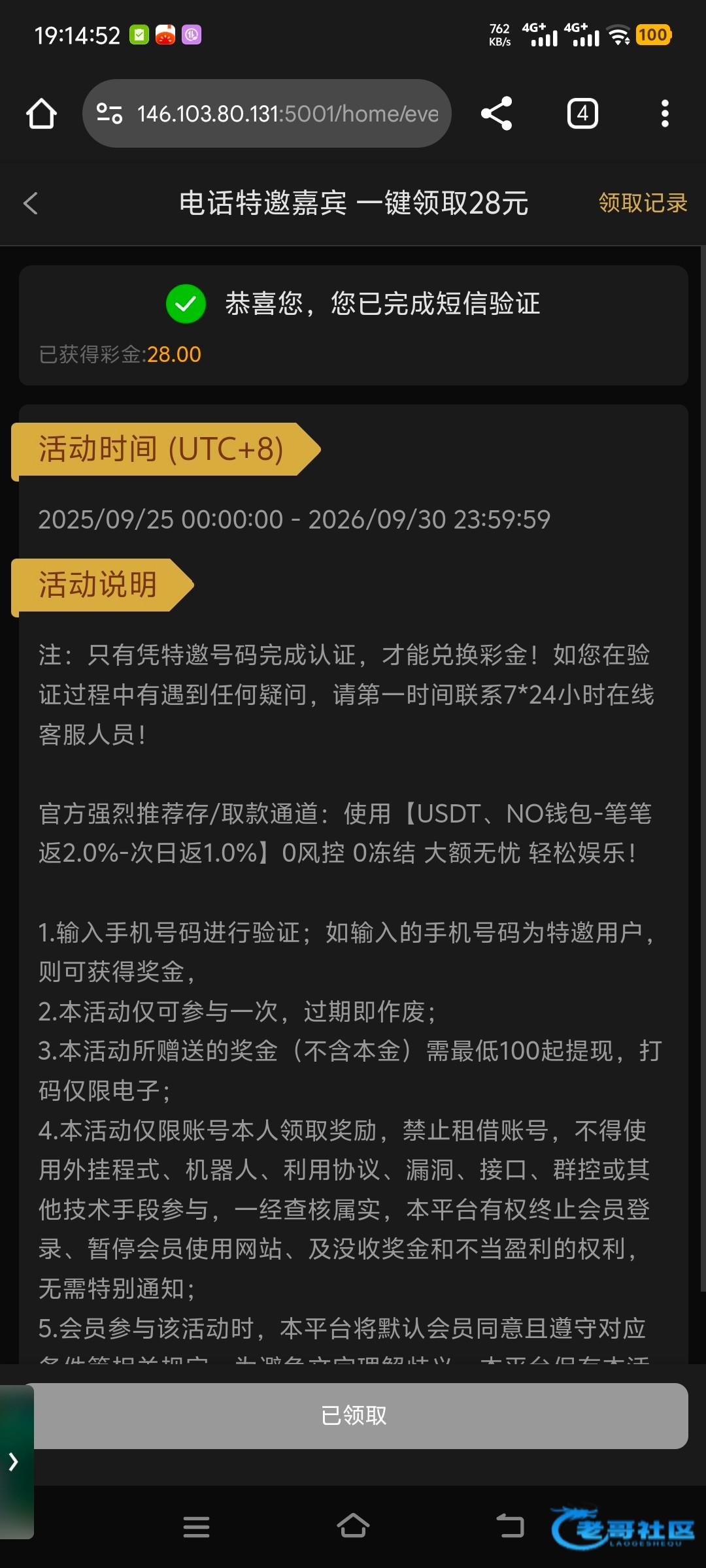 下午接到电话说送28 但是去注册的时候发现已经注册过了,我就登录老号把另一个手机号换绑过去,重新注册了个新号绑定特邀手机号就领取成功了,你们有漏接电话的 或者想碰瓷的 可以去试试。754017.cc