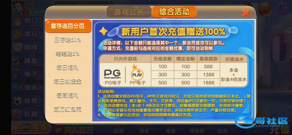 司马清风娱乐里面的pg是假pg 我玩pg这么多年就没遇到过一千五百手不进免费的 你们千万别去参加那个存100送100的活动 纯杀猪盘圈钱的!