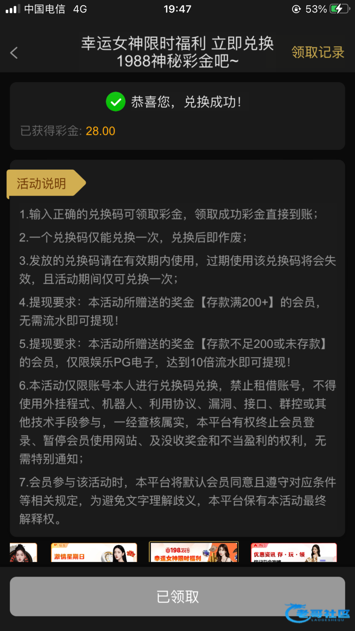 有号的去试一下找客服碰瓷 申请兑换码链接198.cc