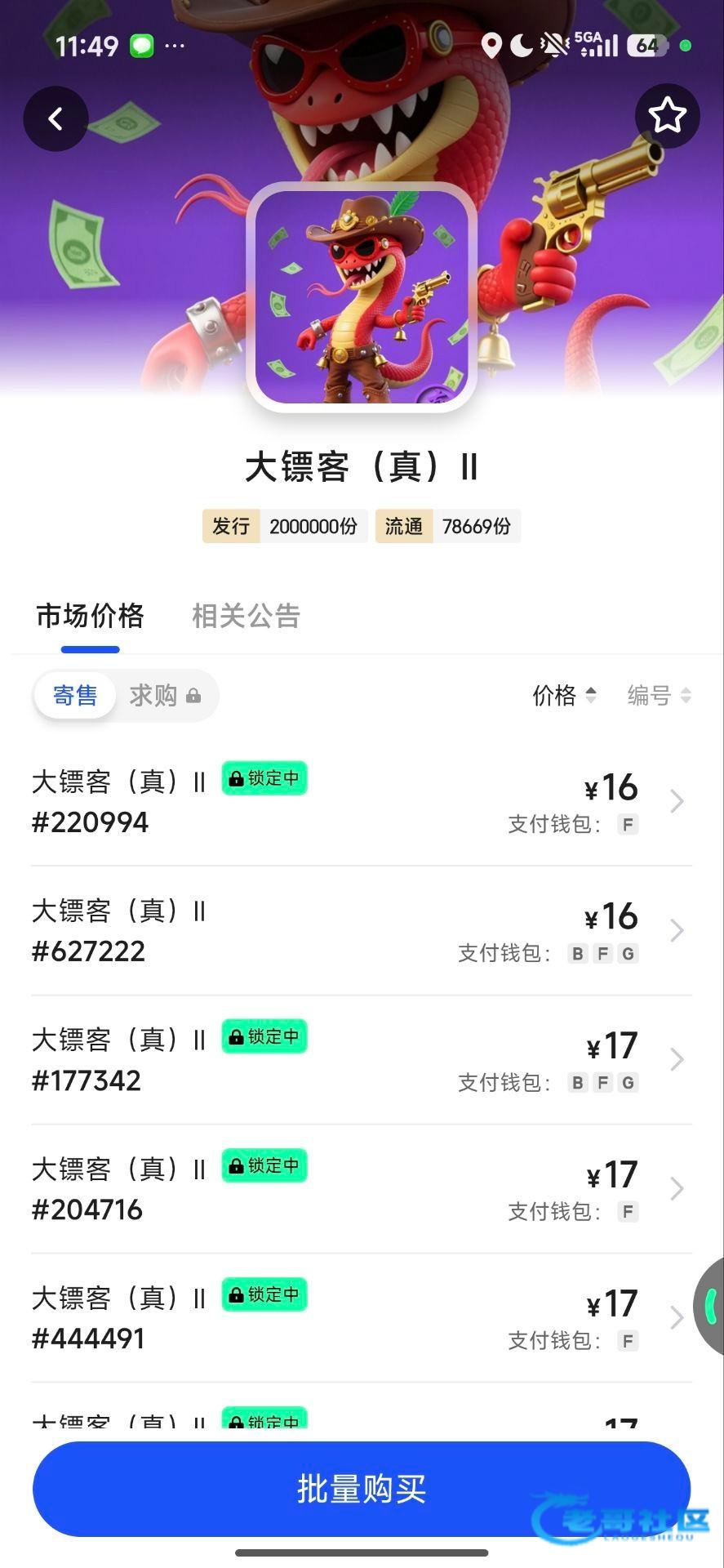 3.然后次日会到一个大镖客二(真),点我的藏品去寄售,输入10或者11卖出即可这样每天都会到一个,当天到当天卖,持续到10.30号下午6点,也就是从头到尾你只需要投入3块钱购买一个藏品,后续每天白嫖10块钱,连续十多天。