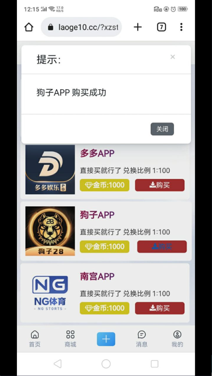 久老哥今天在老哥社区,用老哥币买了狗子28 1000金币,打上去260 小吃上安排抽5好运牛