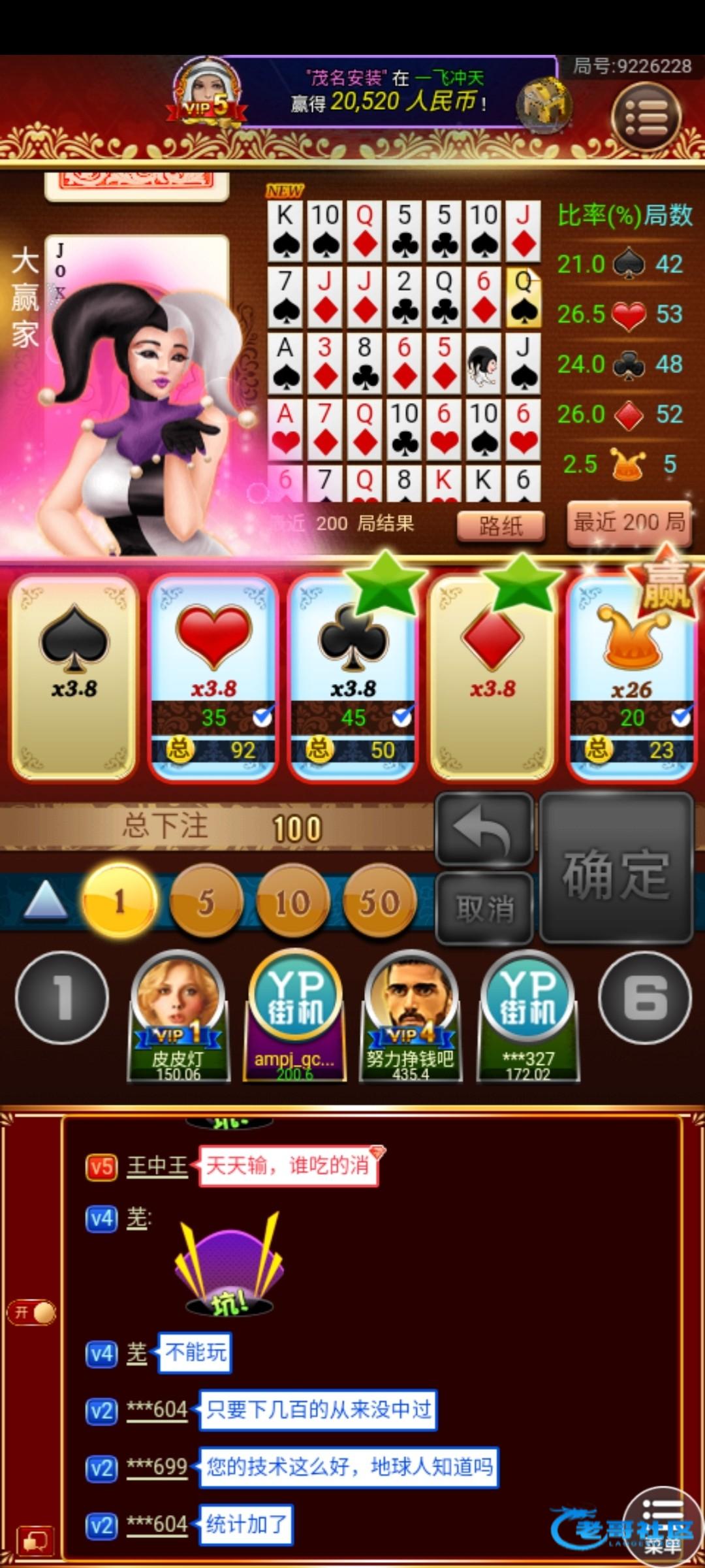 有经常打这个的老哥吗 我的打法有问题不 ,打到1300就打不上去然后输没,最大一把也中了压的200梅花150红桃 50小丑 中了梅花,我一直压的就是梅花红桃 小丑 其他没压过