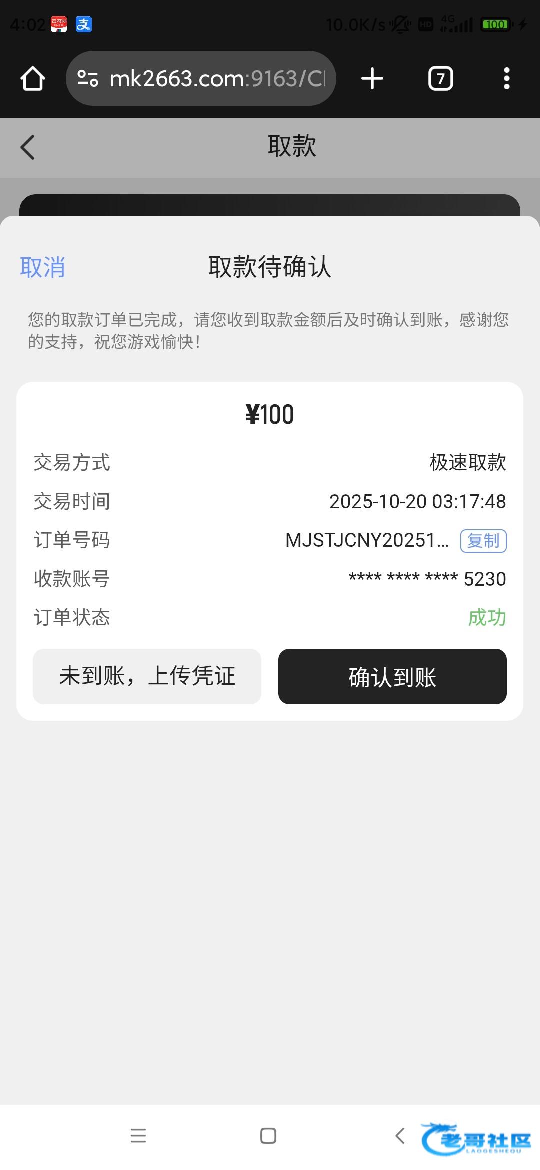 不知道能不能到账。免中免