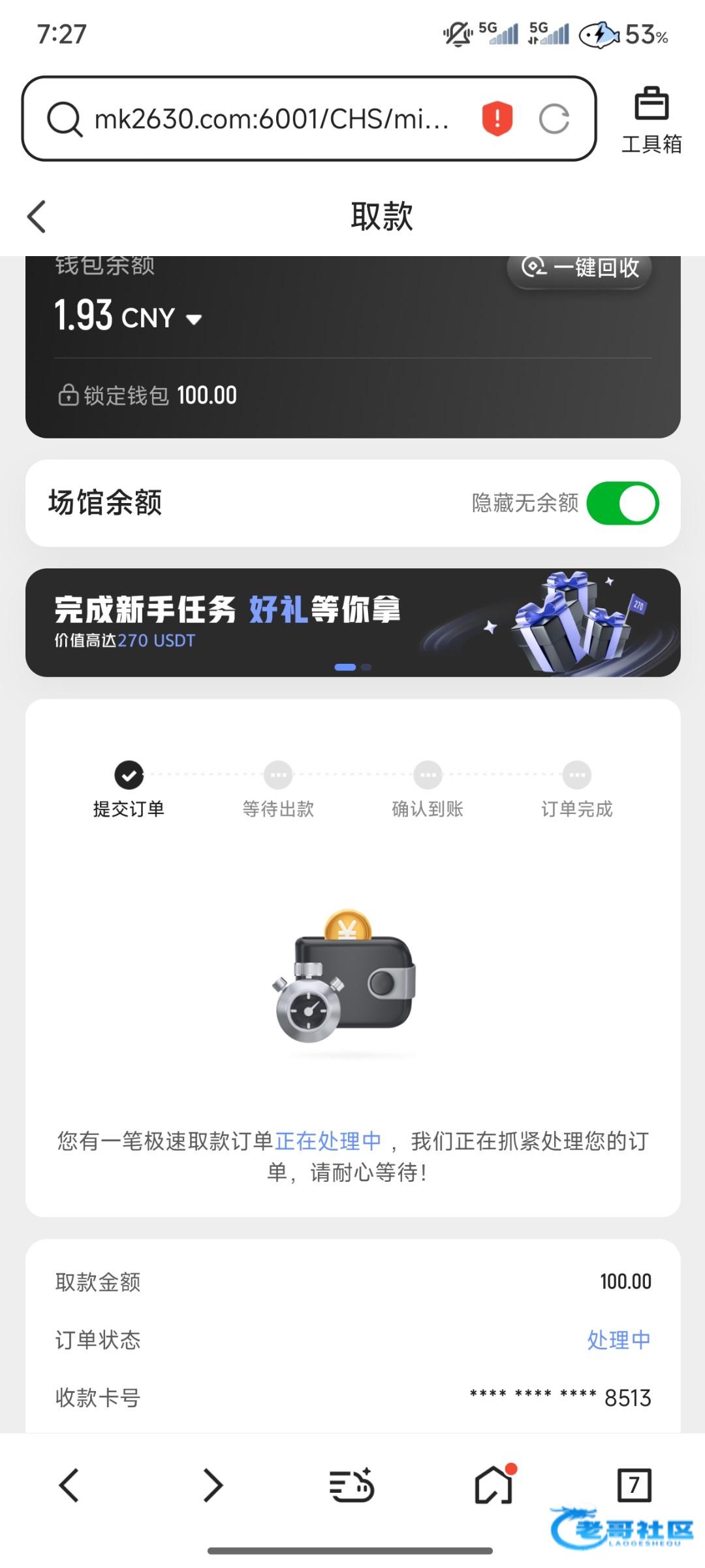 上次提了100号被冻结了